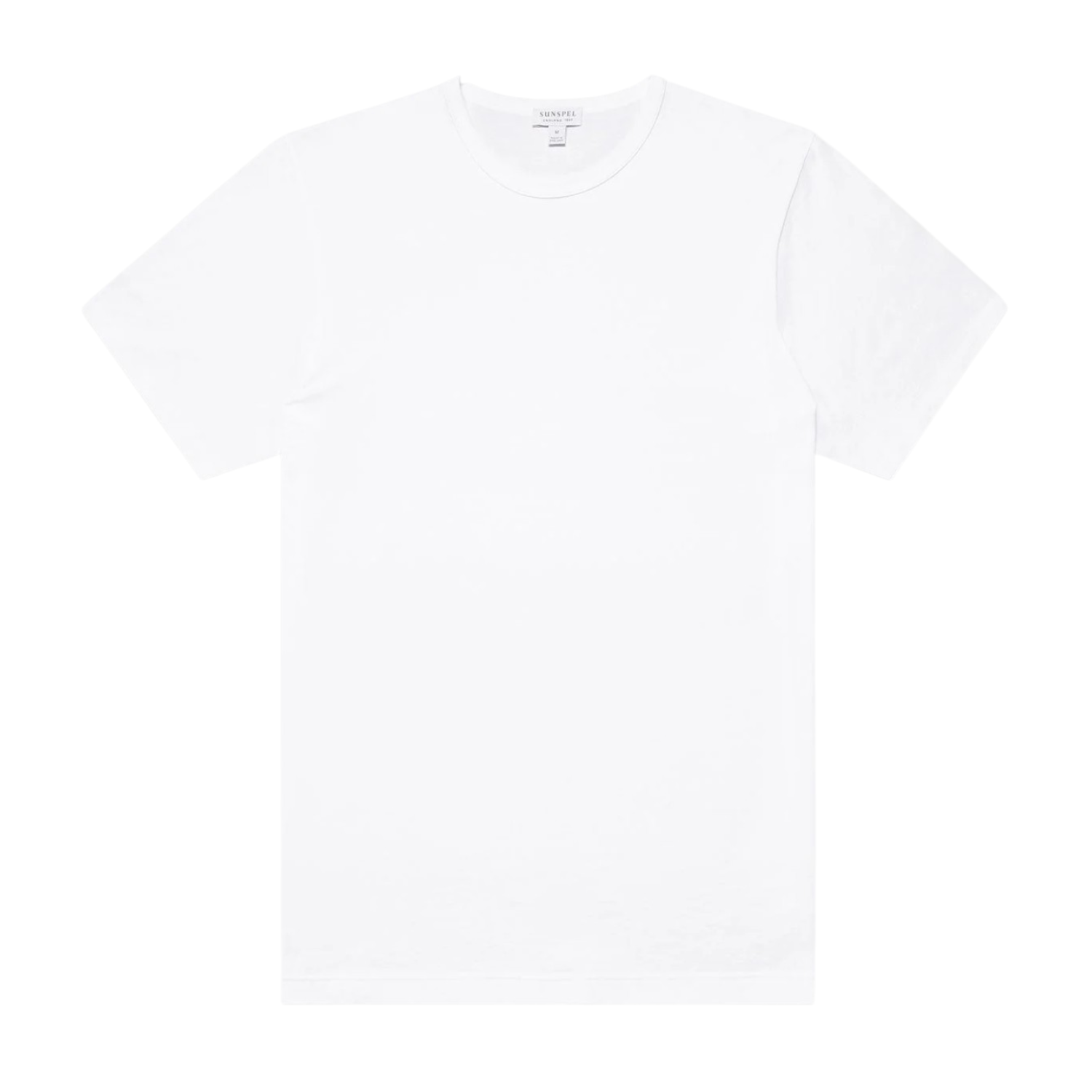 Sunspel White Classic T‑Shirt. The fabric - a unique Sunspel development - is lightweight, durable and exceptionally smooth against the skin. With a slim fit, it is essential to every wardrobe.