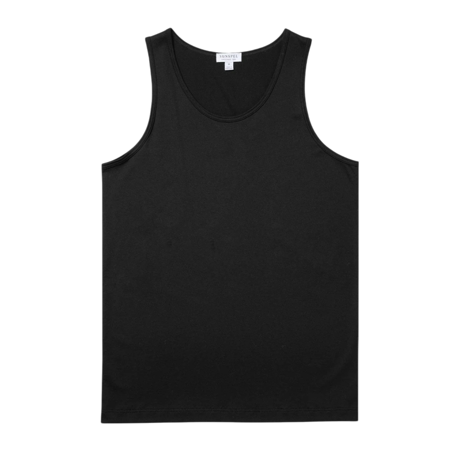 Sunspel Black Superfine Cotton Underwear Vest. The open knit of this cellular vest allows air to circulate freely, keeping the body cool and comfortable. With its long, loose fit, it’s an ideal choice for warm days or for simply relaxing at home.