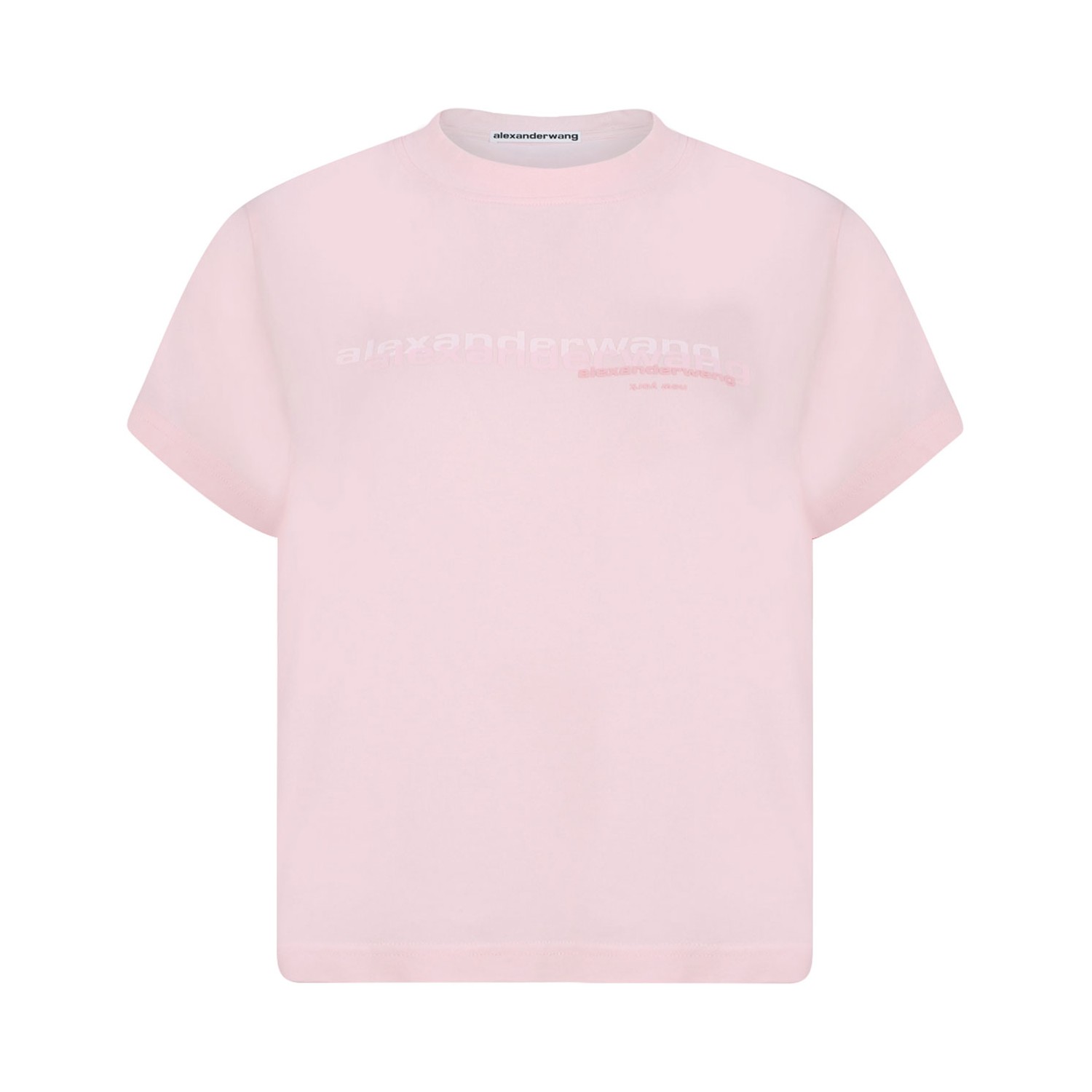 Alexander Wang Light Pink Logo-Print Cotton T-Shirt. Light pink cotton t-shirt with crew neck, logo print at the chest, short sleeves and straight hem.