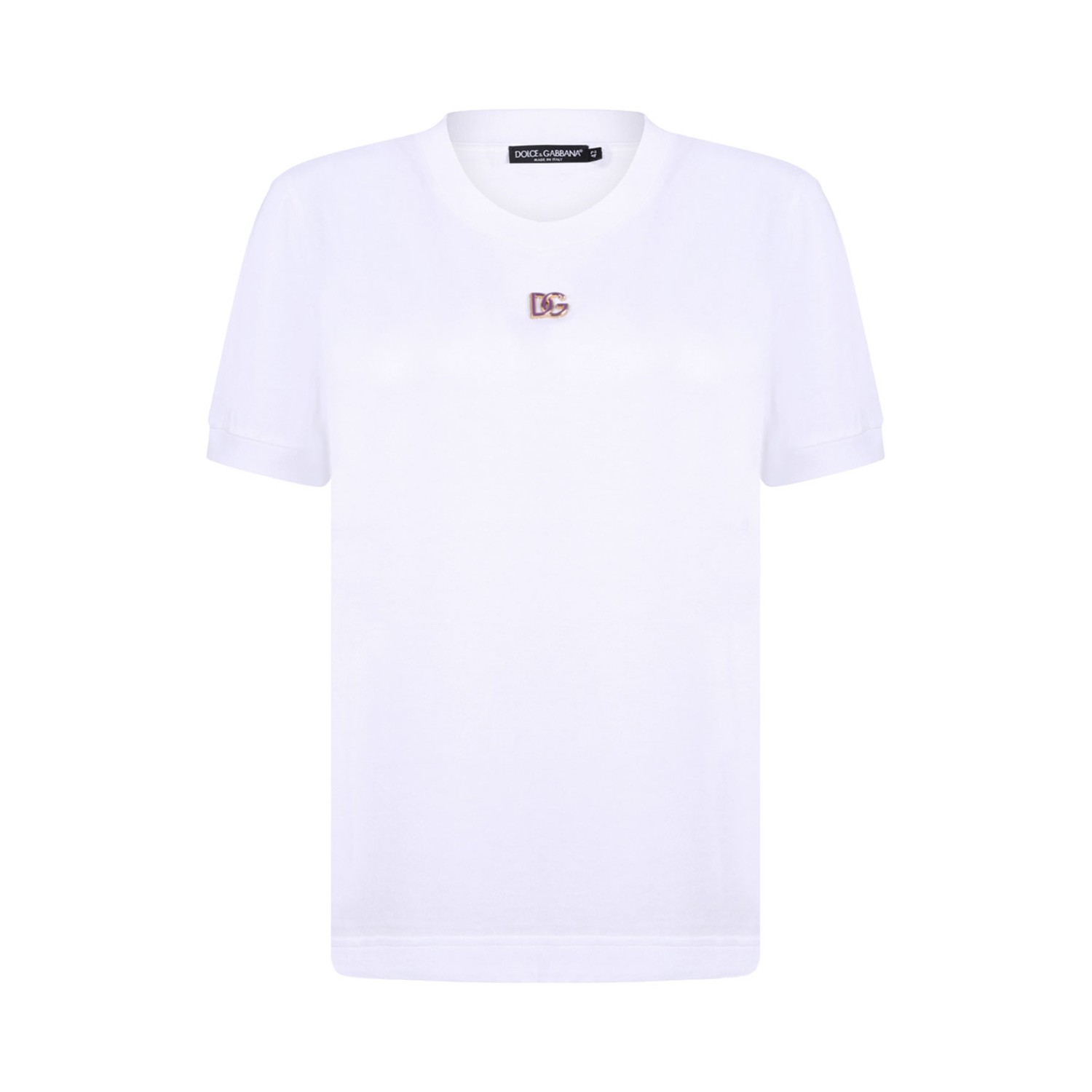 Dolce & Gabbana White T-Shirt With Logo. White cotton t-shirt with crew neck, short sleeves, straight hem and logo plaque.