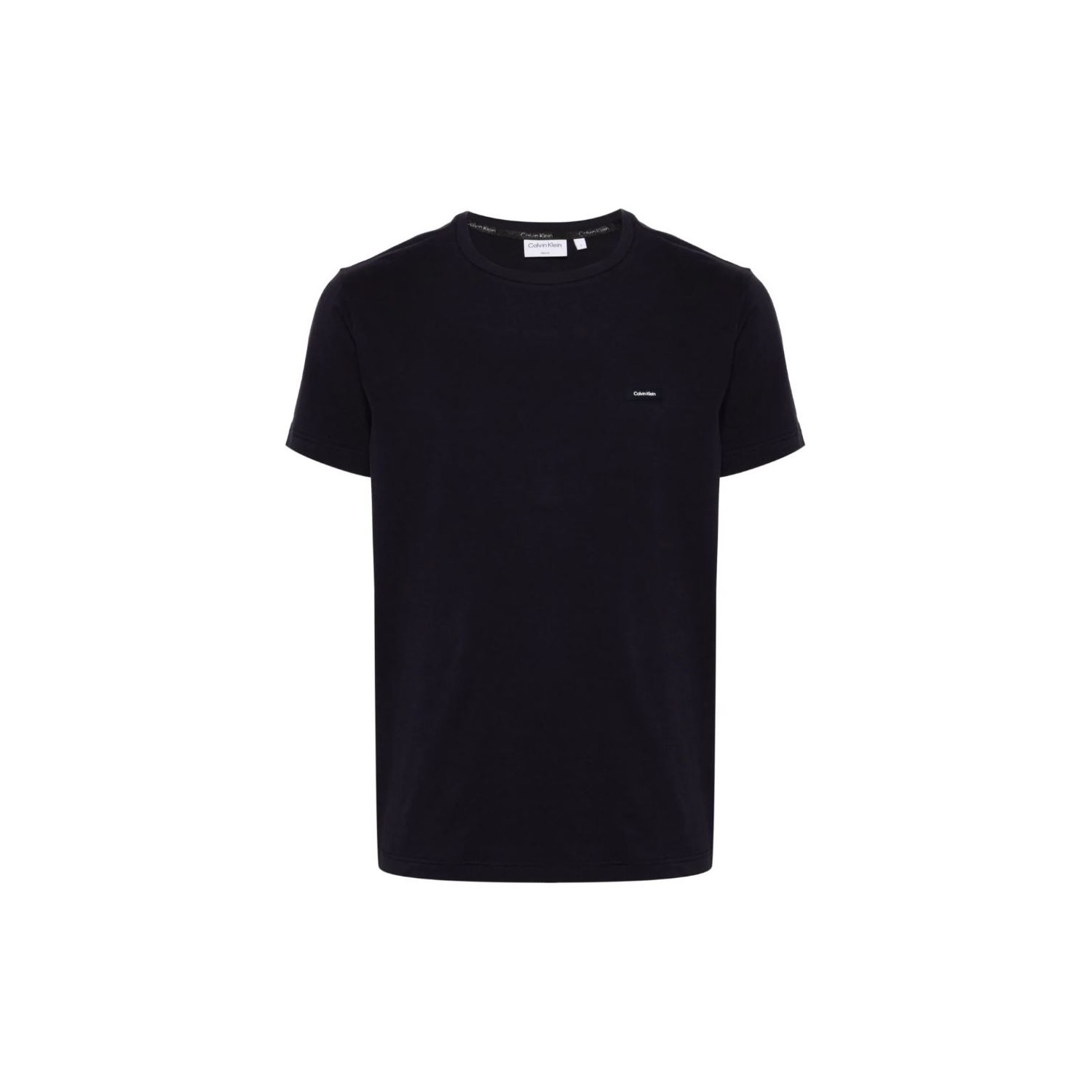 Calvin Klein Blue Logo Plaque T-Shirt. Blue logo plaque t-shirt made from regenerative stretch cotton. Slim fit, crew neck, short sleeves. Tone-on-tone logo plaque on chest.