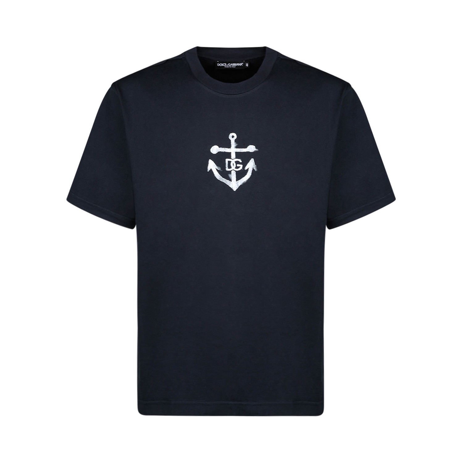 Dolce&Gabbana Dark Blue Navy Print T-Shirt with short sleeves and round neckline.