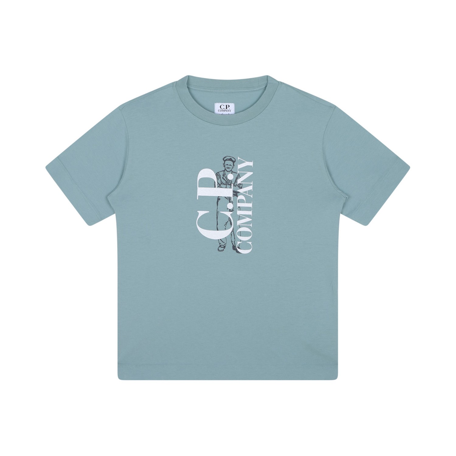 C.P. Company Kids Lagoon Green Logo Print T-Shirt. Lagoon green cotton t-shirt with logo print to the front, crew neck, short sleeves.