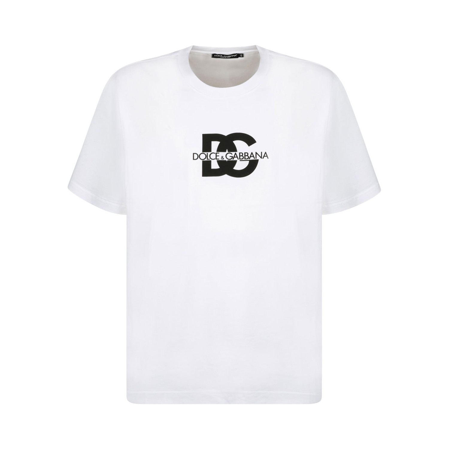 Dolce & Gabbana White Cotton DG Print Logo T-Shirt. White cotton t-shirt with round neckline, dropped short sleeves and front and back DG logo.
