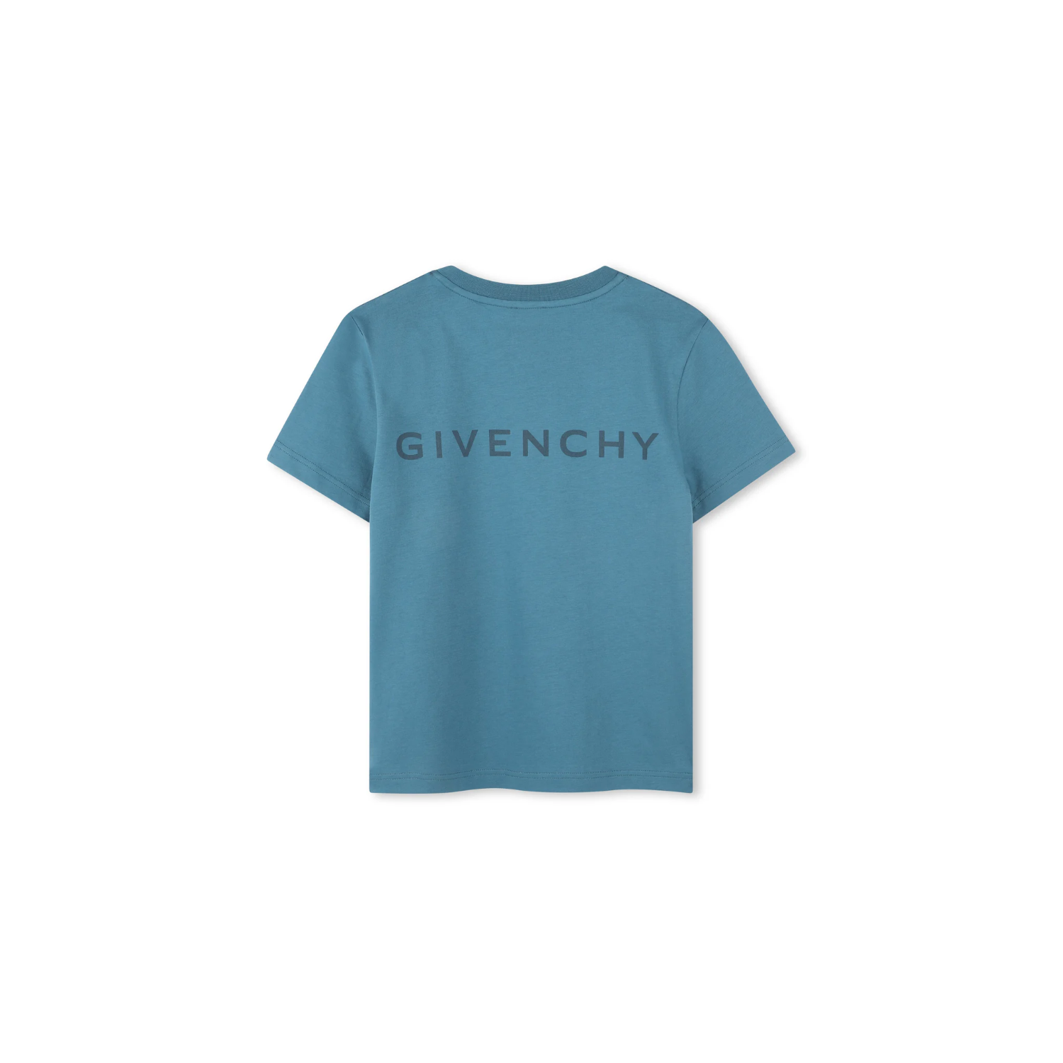 Givenchy Kids 4G Print T-Shirt. Blue ashes cotton t-shirt, 4G logo print to the front, logo print to the rear, crew neck.