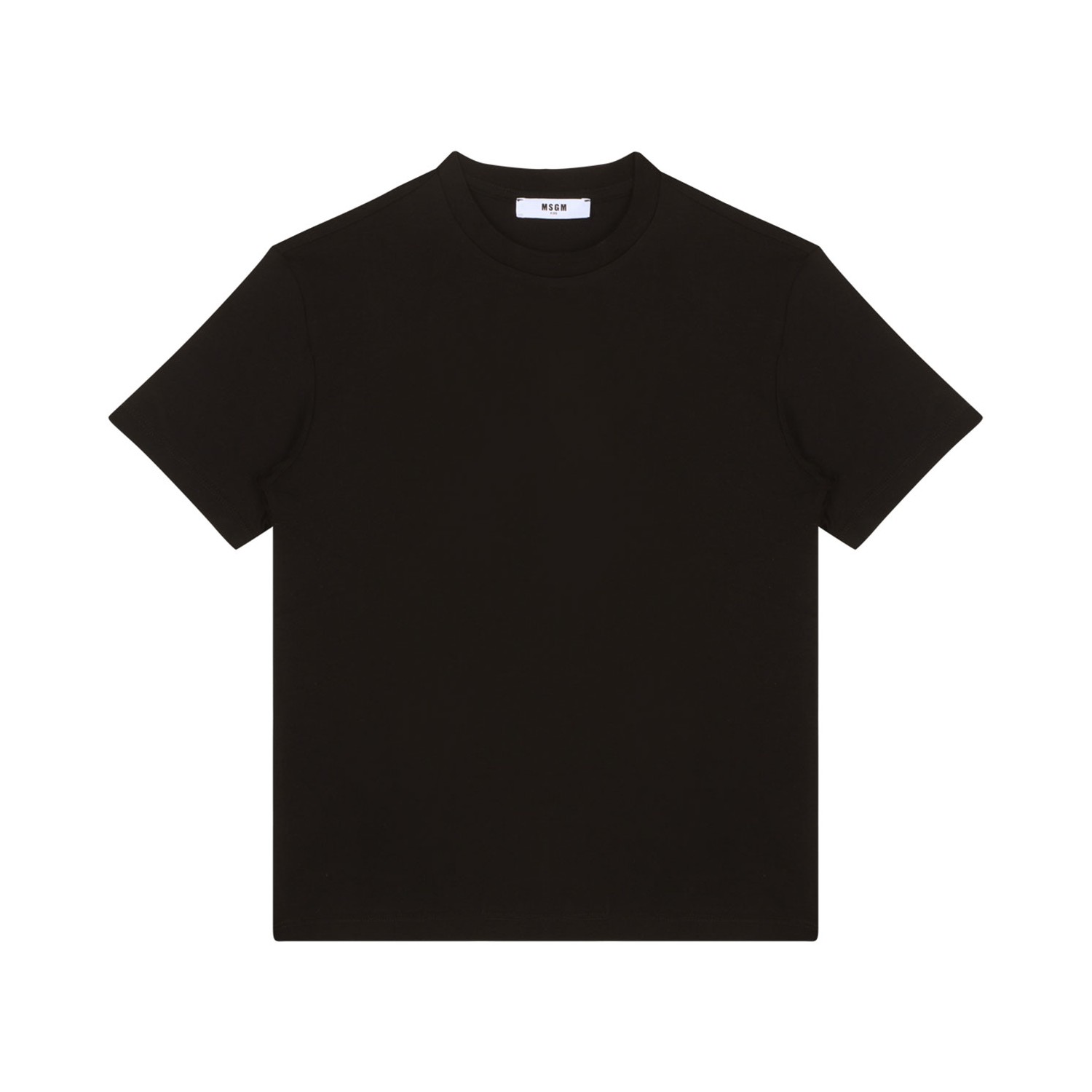 MSGM Kids Black Logo Print T-Shirt. Black cotton t-shirt with logo print to the front, crew neck, short sleeves.