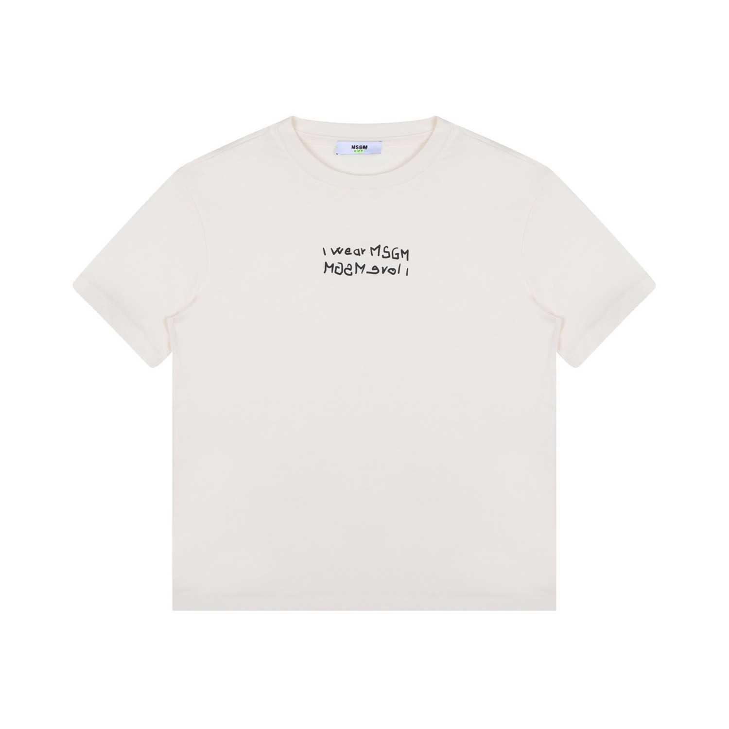 MSGM Kids White Logo Print T-Shirt. White cotton t-shirt with logo print to the front, crew neck, drop shoulder, short sleeves.