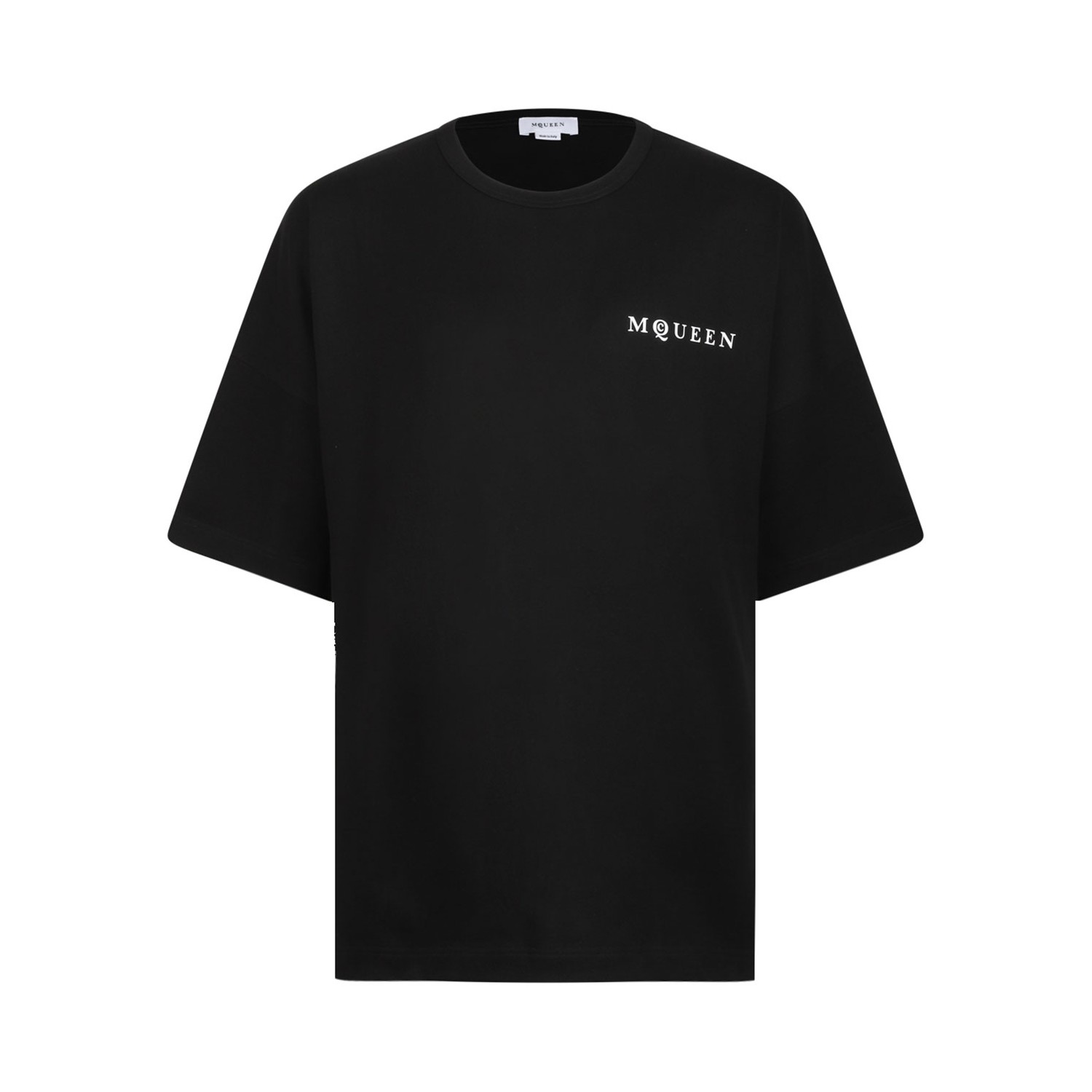 Alexander Mcqueen Black Logo Print T-Shirt. Black cotton t-shirt, logo print to the front, crew neck, short sleeves.
