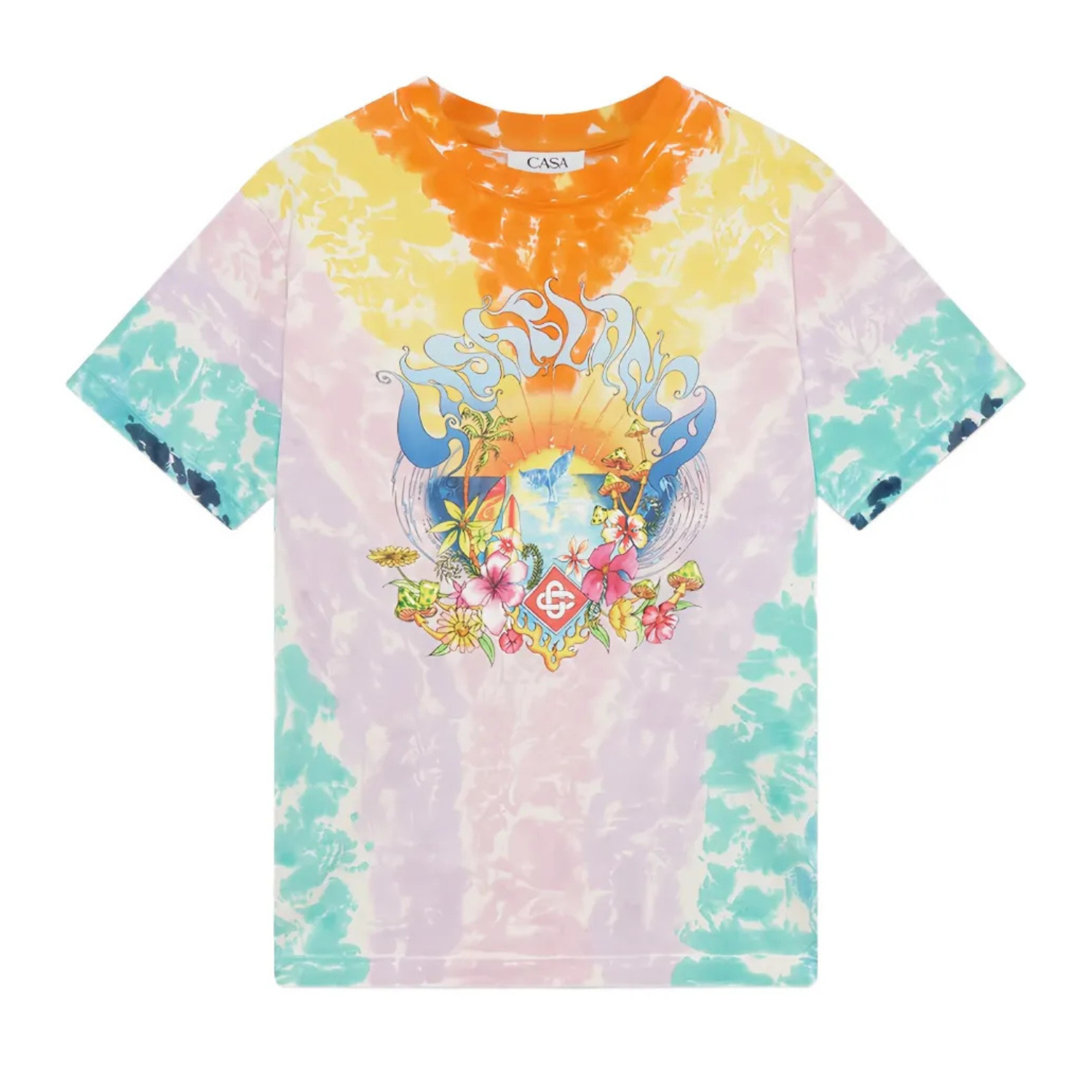 Casablanca Multicolour Surf Trip T-Shirt. Multicolour organic cotton t-shirt with crew neck, all-over graphic print, short sleeves and straight hem.
