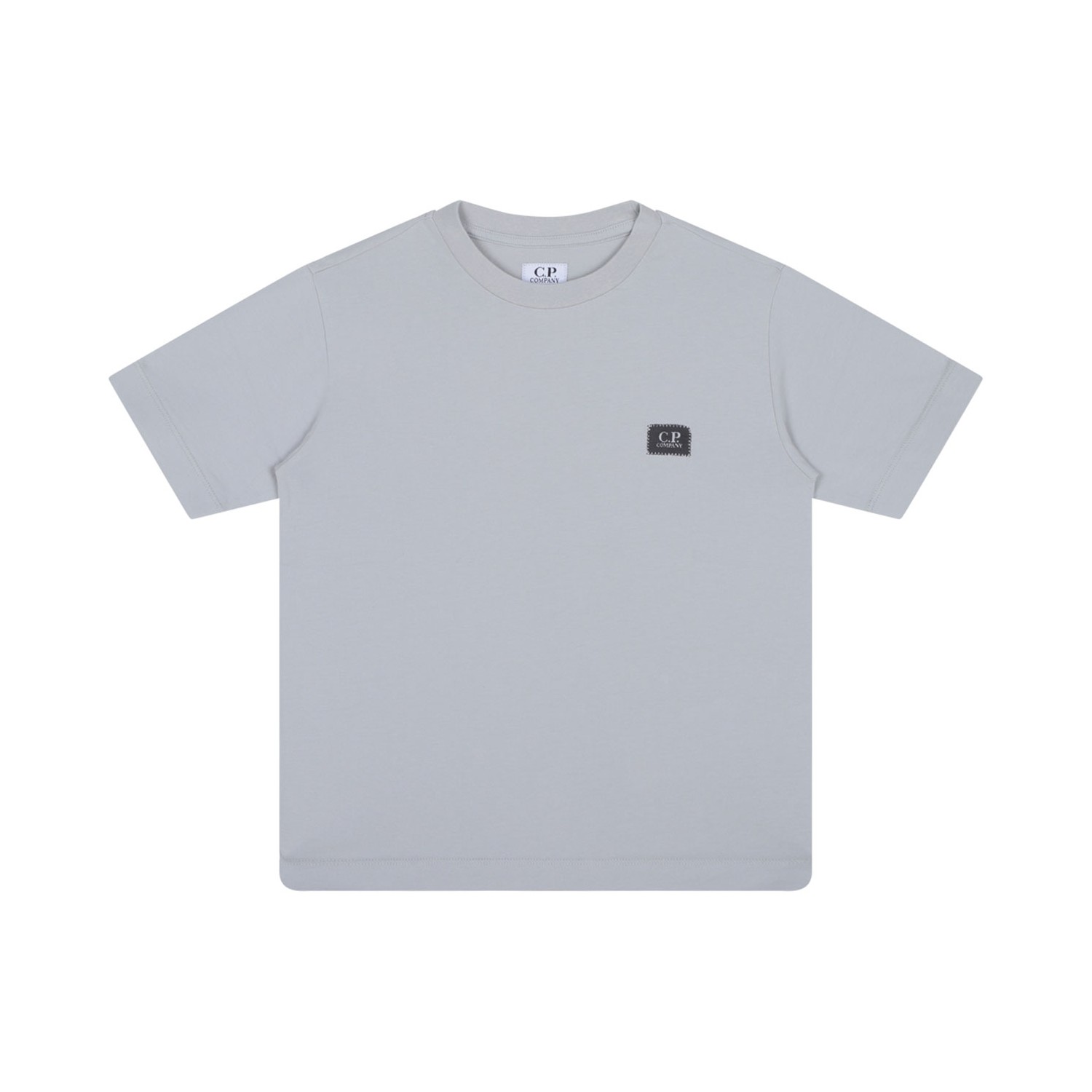 C.P. Company Kids Frosted Ice Logo Patch T-Shirt. Frosted ice cotton t-shirt with logo patch to the front, crew neck, short sleeves.