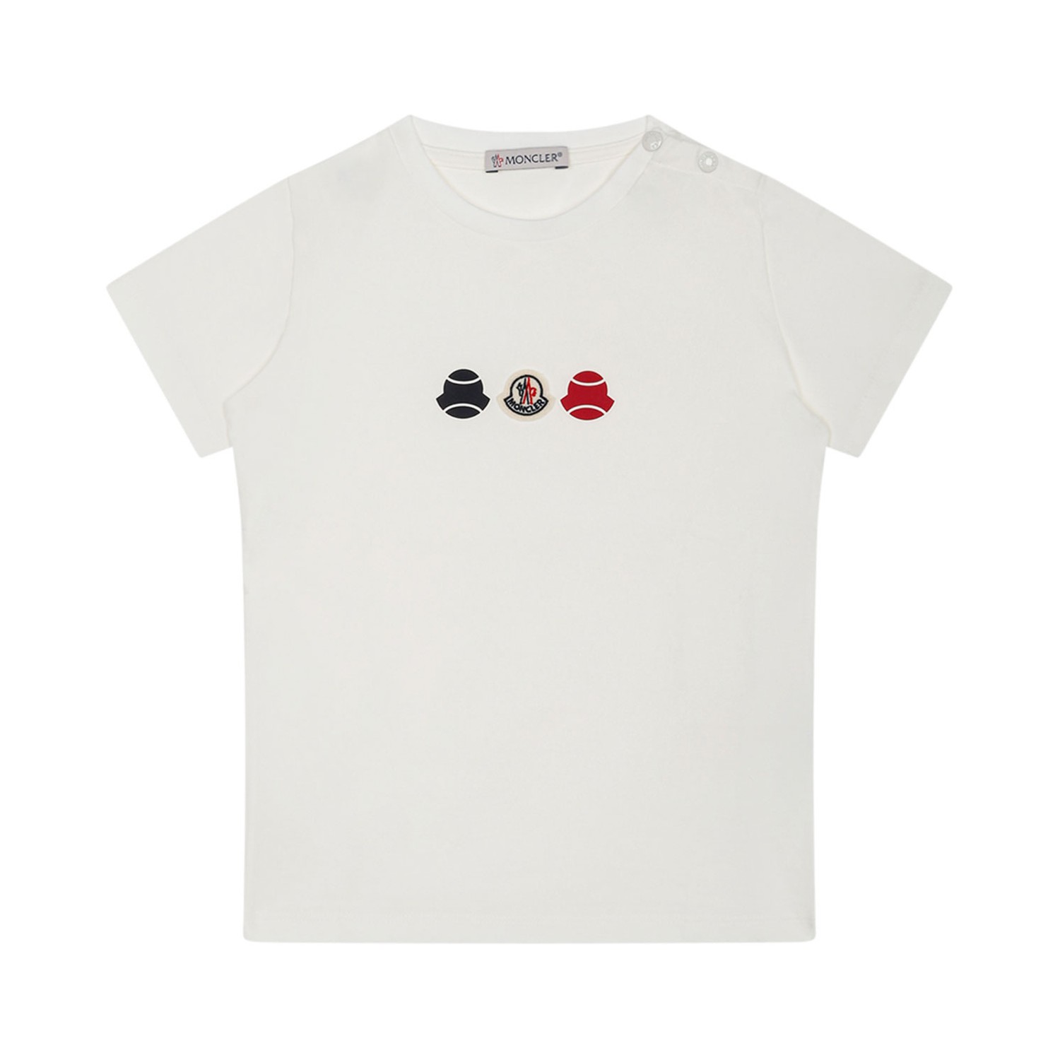 Moncler White Logo Tennis T-shirt made of jersey with front logos inspired by the tennis universe. Snap button closure in the shoulder. Short sleeves and crew neck.