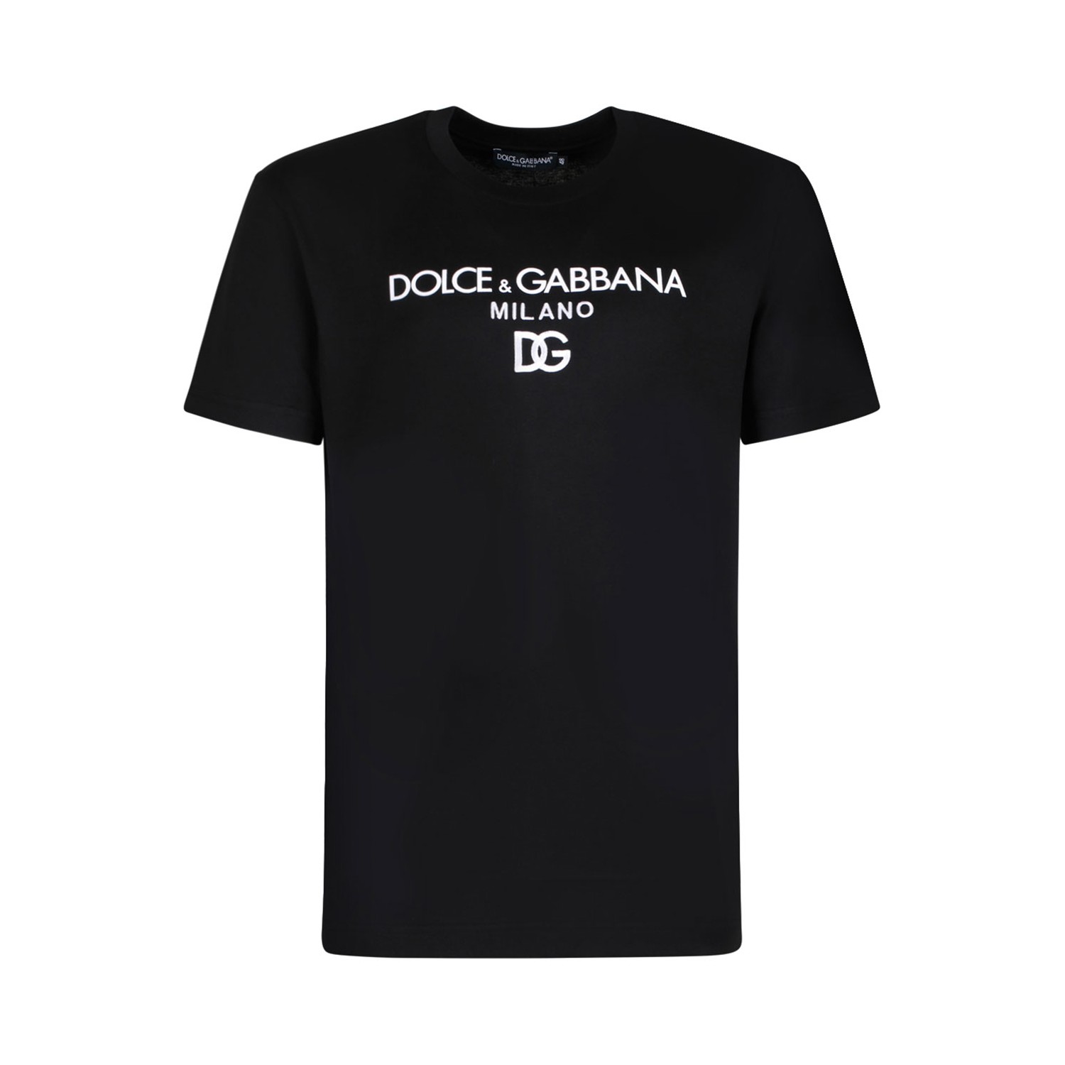 Dolce & Gabbana Black T-Shirt. Black cotton jersey t-shirt. Regular fit, round neckline, short sleeves, with DG embroidery and print.