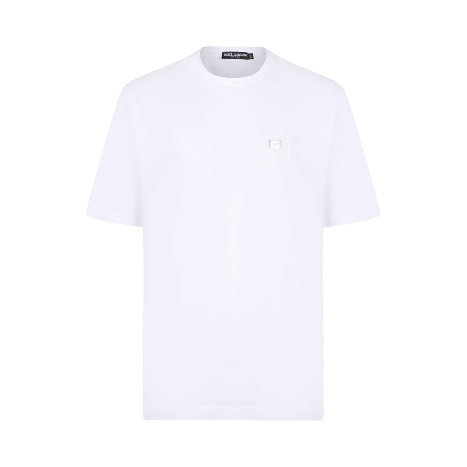 Dolce & Gabbana White Logo Plaque T-Shirt. White cotton t-shirt, logo plaque to the front, short sleeves, staright hem.