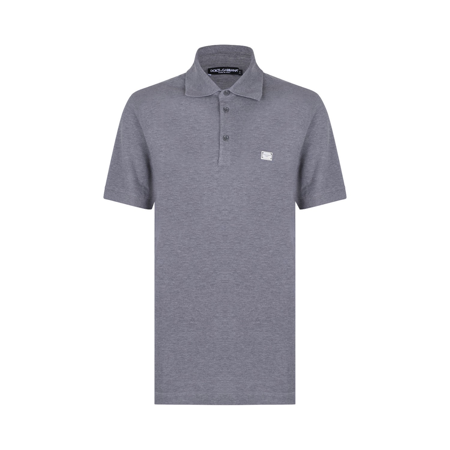 Dolce & Gabbana Grey Logo Plaque Polo Shirt. Grey cotton polo shirt with logo plaque to the front, short front button fastening, short sleeves, polo collar.
