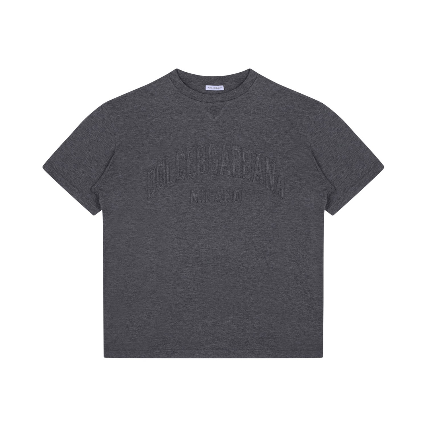 Dolce & Gabbana Kids Melange Grey Embossed-Logo T-Shirt. Melange grey cotton t-shirt with embossed logo to the front, short sleeves, crew neck and straight hem.