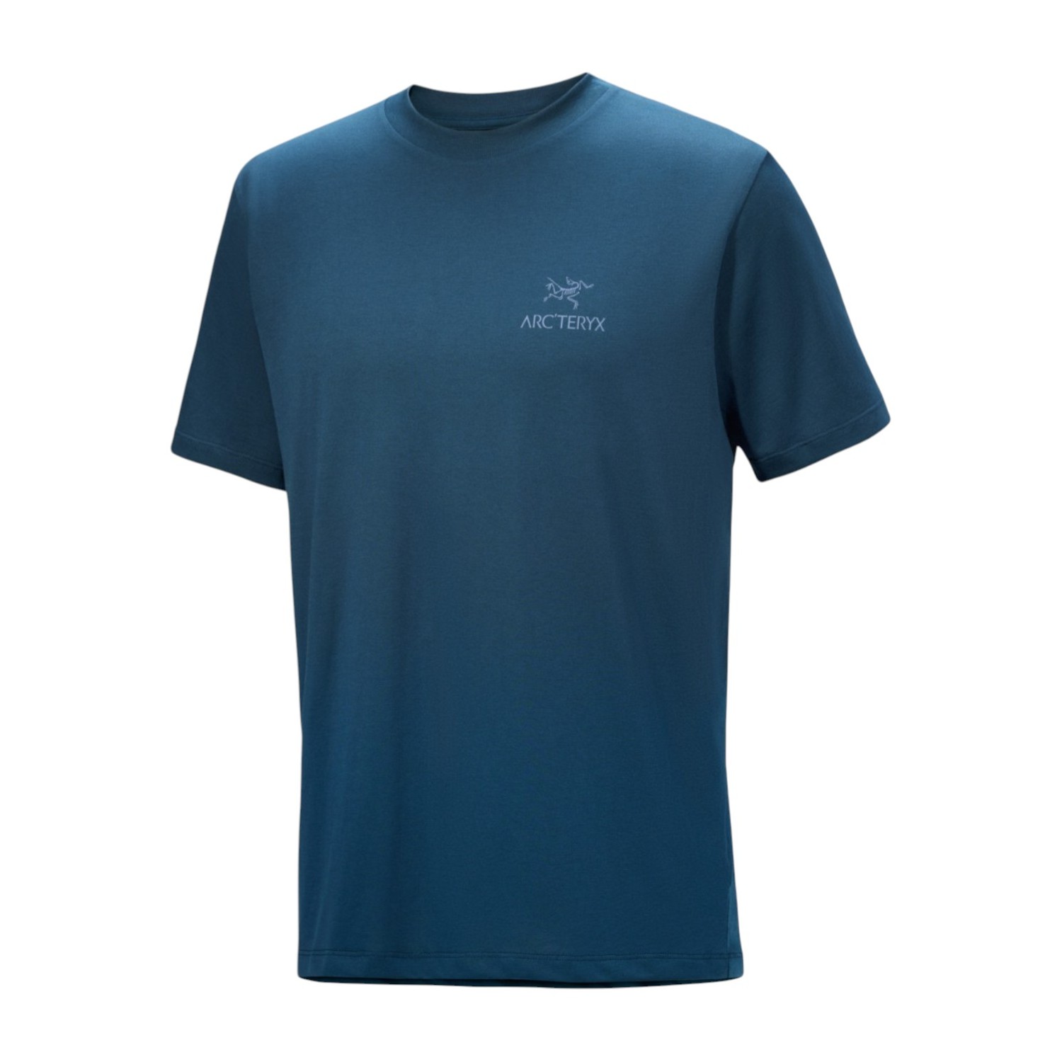 Arc'teryx Night Scape Kragg SL Cotton Bird Word Shirt SS. Night scape regular-fit premium cotton climbing tee for breathability and durability.