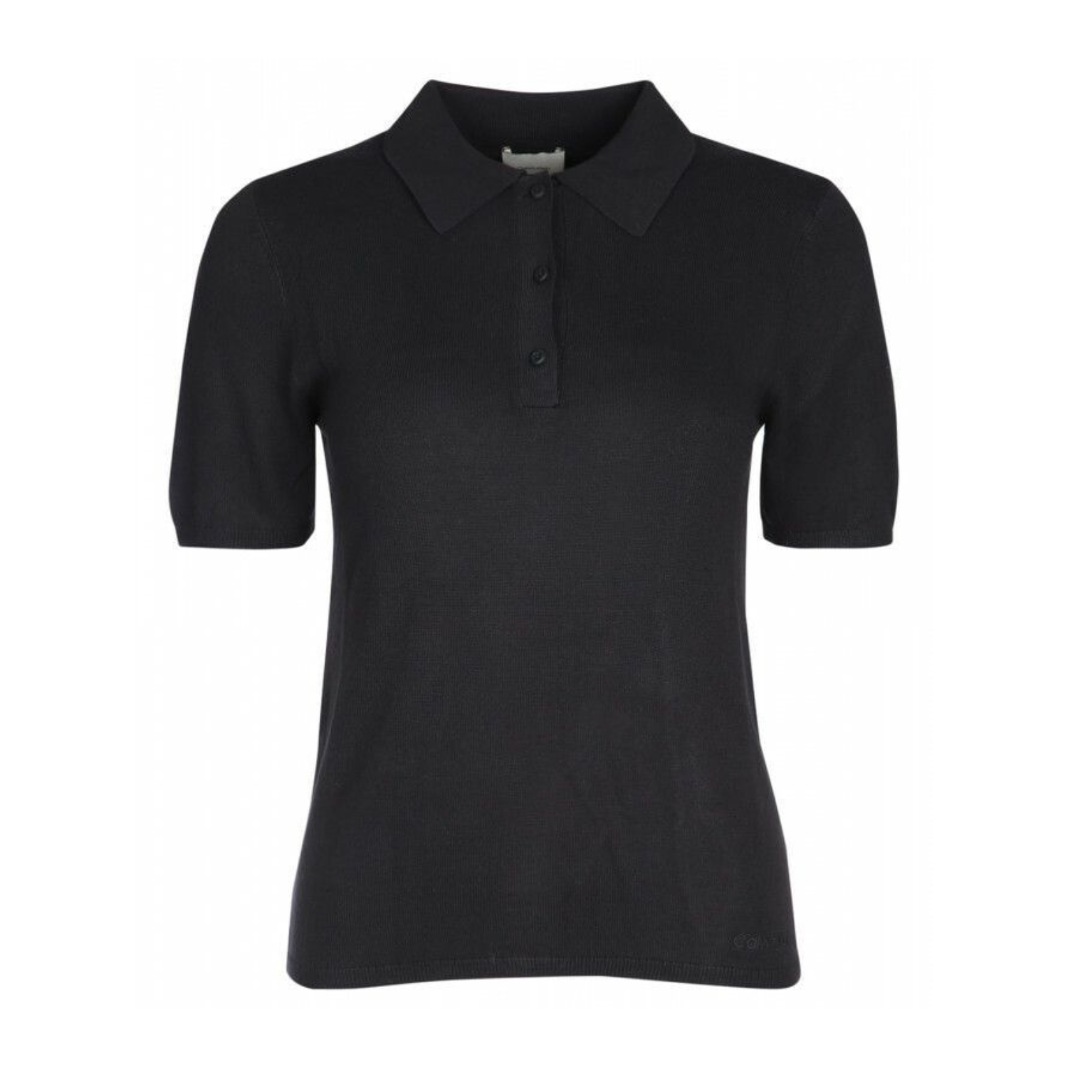 Calvin Klein Black Short Sleeves Polo Shirt. Black viscose polo shirt with classic collar, front button fastening, short sleeves.