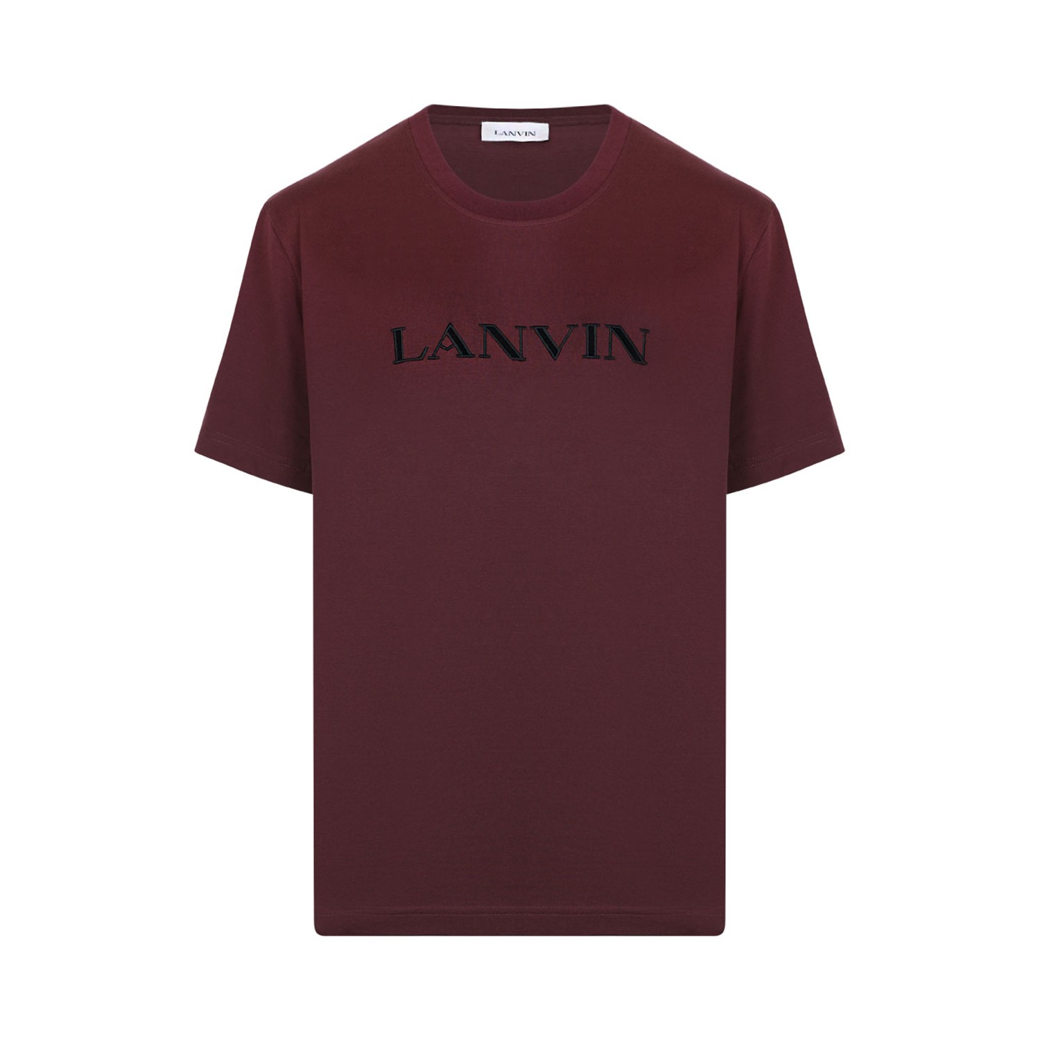Lanvin Bordeaux Logo Embroidered T-Shirt. Bordeaux cotton t-shirt with logo embroidered t-shirt with crew neck, short sleeves.