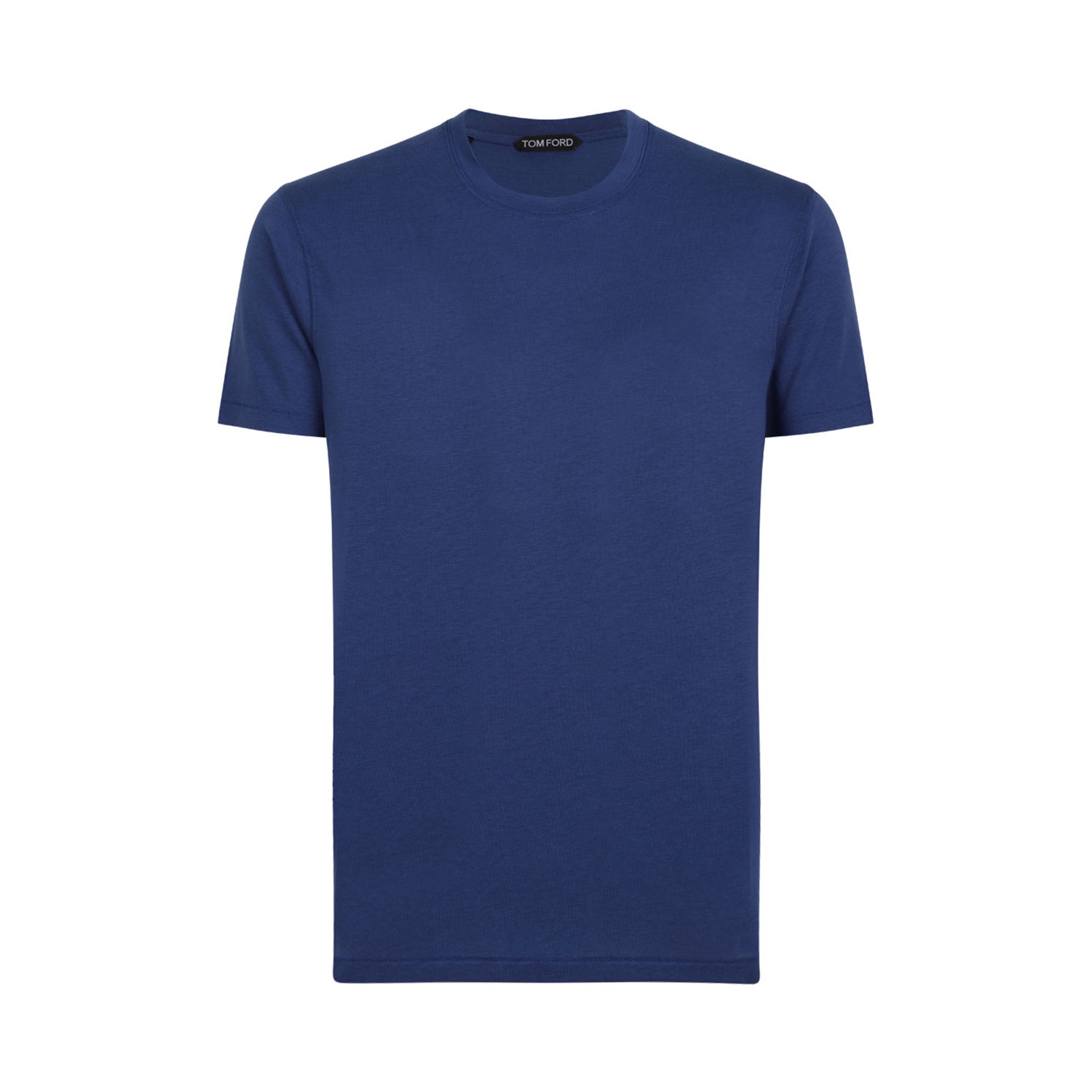Tom Ford Prussian Blue Lyocell Cotton Blend Crew Neck T-Shirt. Prussian blue lyocell-cotton blend t-shirt with crew neck, short sleeves.