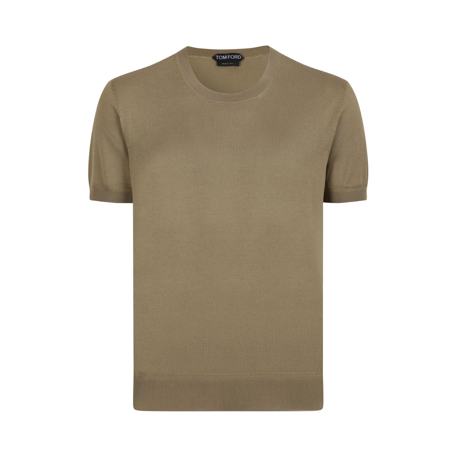 Tom Ford Military Sand Pure Cotton Crew Neck T-Shirt. Military sand pure cotton t-shirt with crew neck, short sleeves.