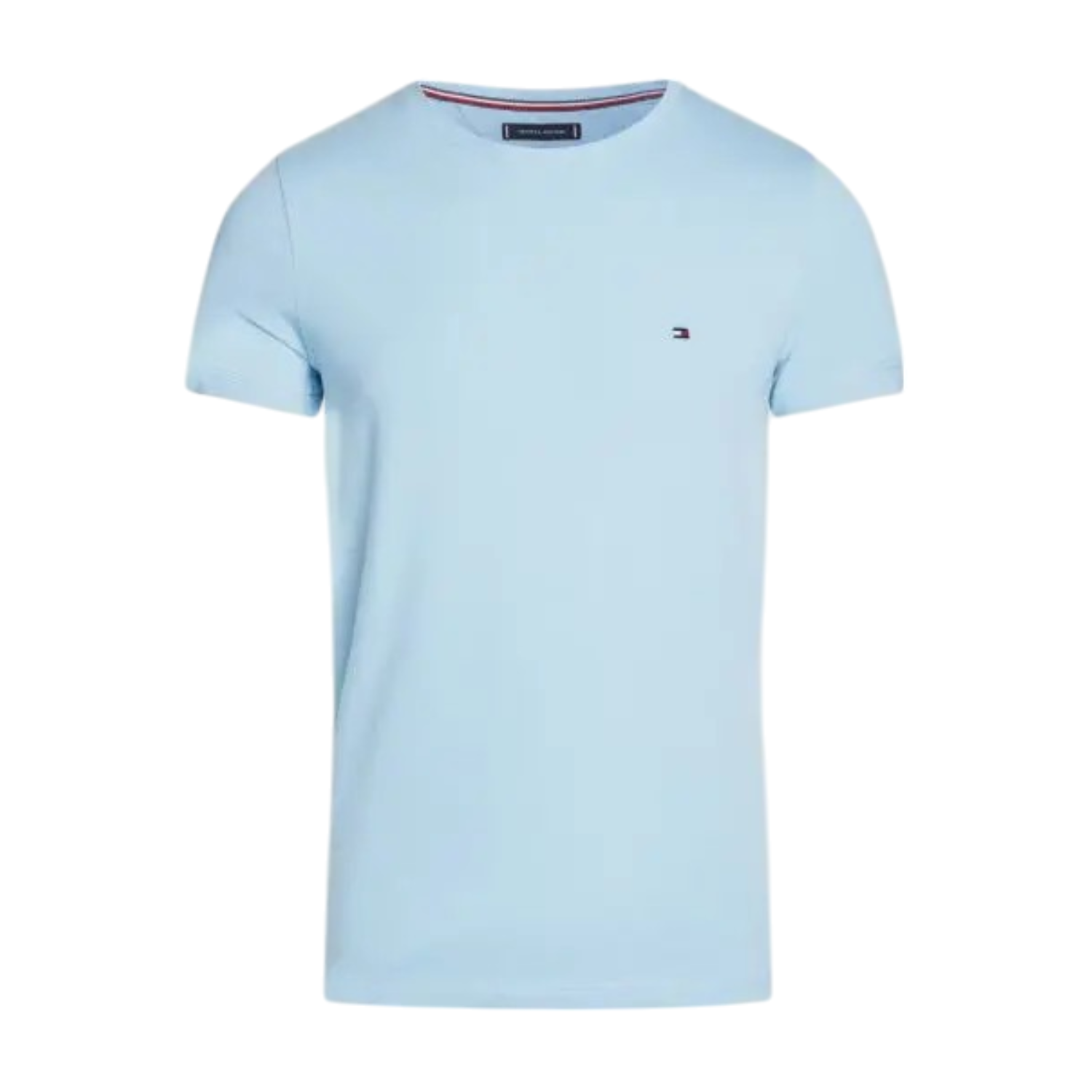 Tommy Hilfigher Light Blue T-Shirt. Light blue cotton t-shirt, crew neck, short sleeves, logo embroidered to the front.