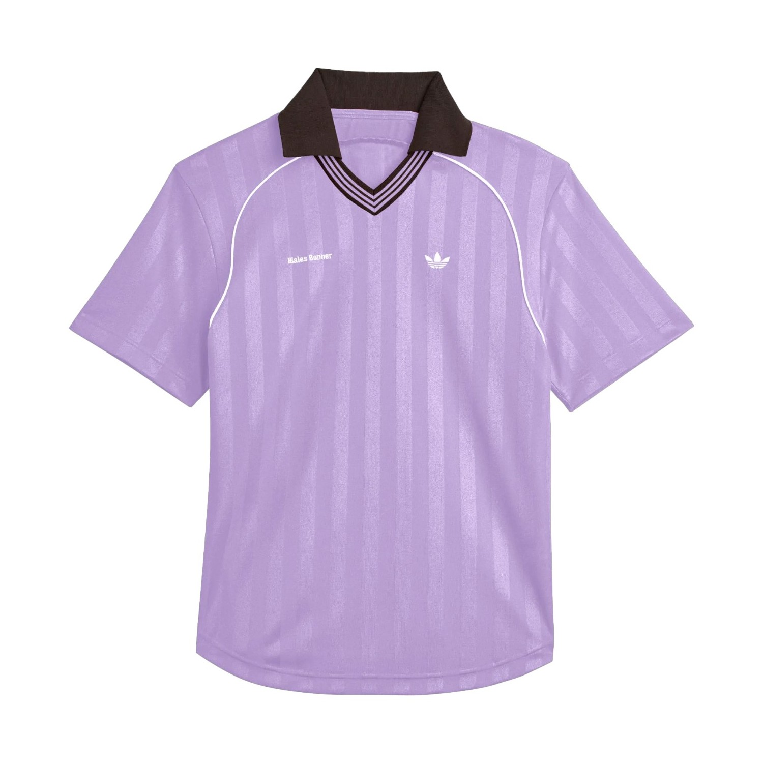 Adidas X Wales Bonner Violet Football T-Shirt. Violet football t-shirt with straight cut enabling free movement, pointed, ribbed neckline with a collar.