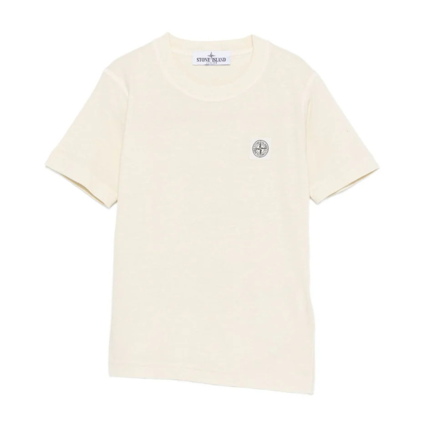 Stone Island Kids Ivory White Compass Patch T-Shirt. Ivory white cotton t-shirt with Compass patch to the front, crew neck, short sleeves.