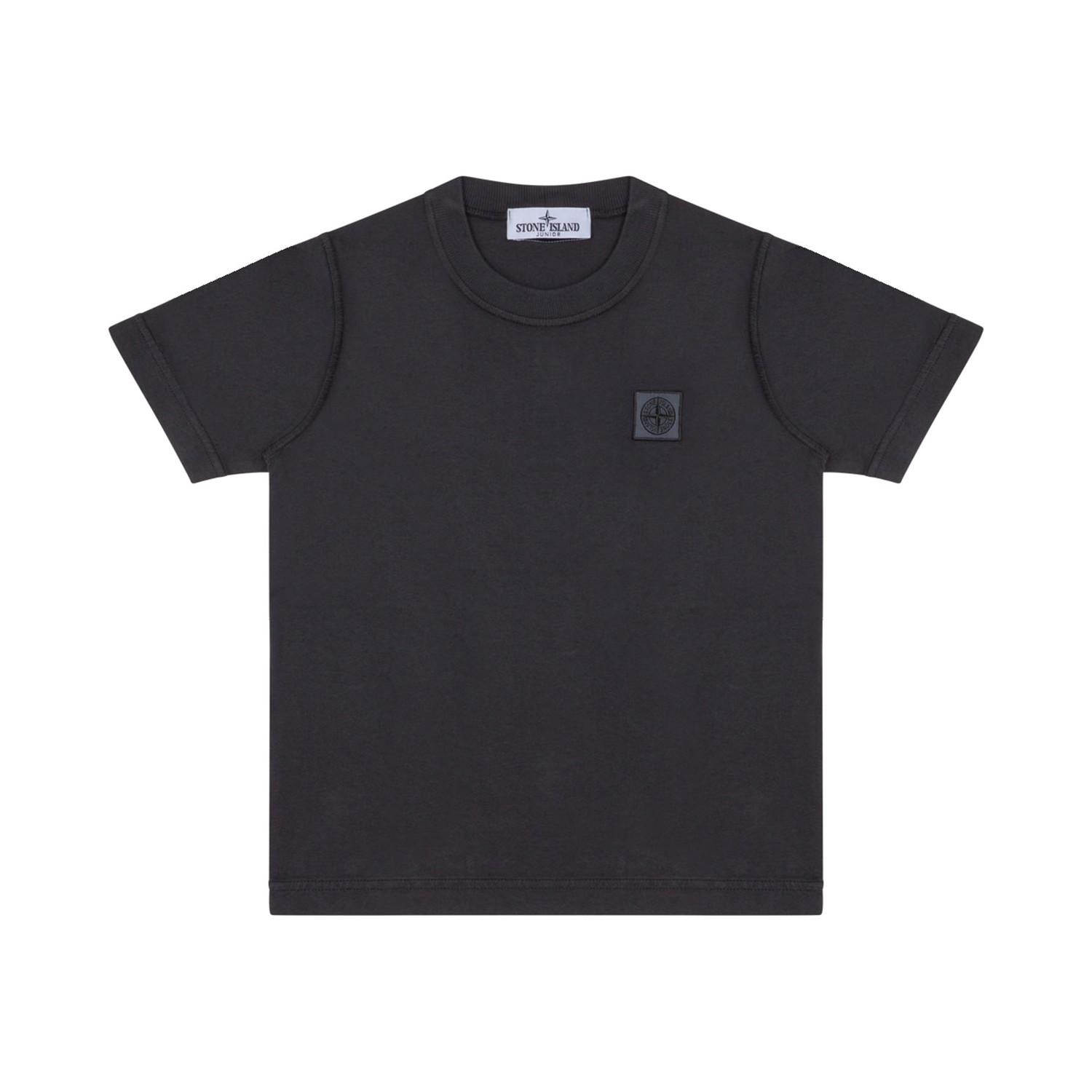 Stone Island Junior Blue Grey Patch Cotton T-shirt. Logo patch on the chest, crew neck, short sleeves, straight hem.