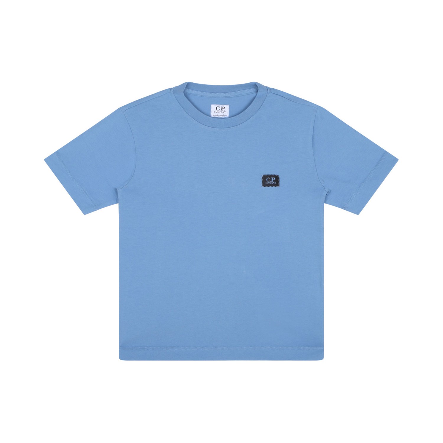 C.P. Company Kids Pacific Blue Logo Patch T-Shirt. Pacific blue cotton t-shirt with logo patch to the front, crew neck, short sleeves.
