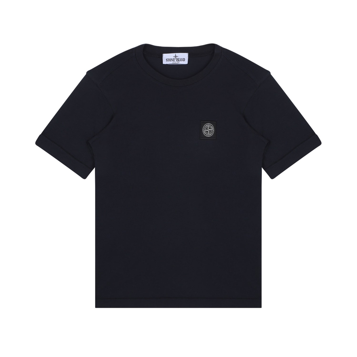 Stone Island Navy Blue T-Shirt. Navy blue cotton t-shirt. Crew neck, stitched logo on the front, short sleeves.