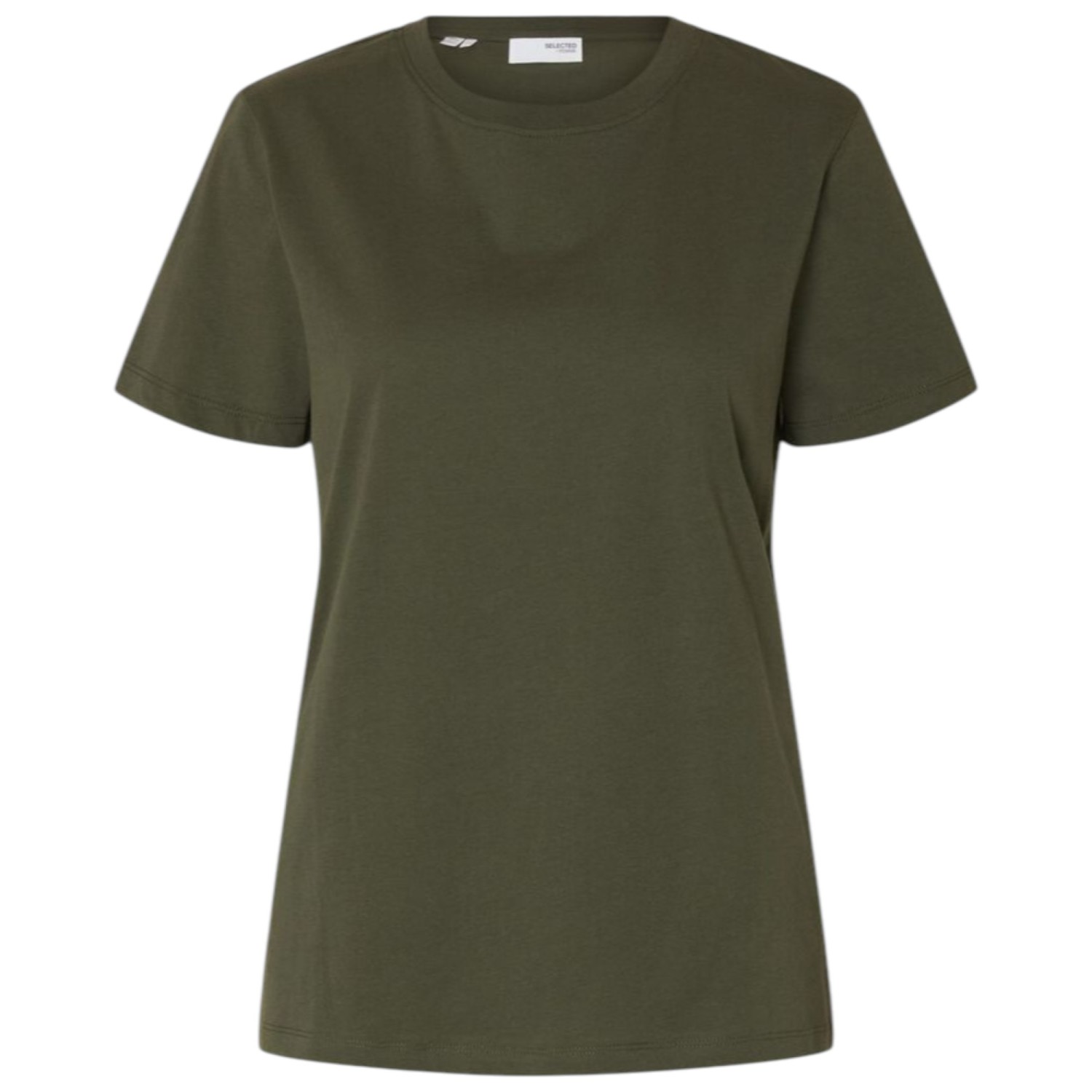 Selected Dark Green Basic T-Shirt. Dark green organic cotton t-shirt with round neck, short sleeves and stitched trims.