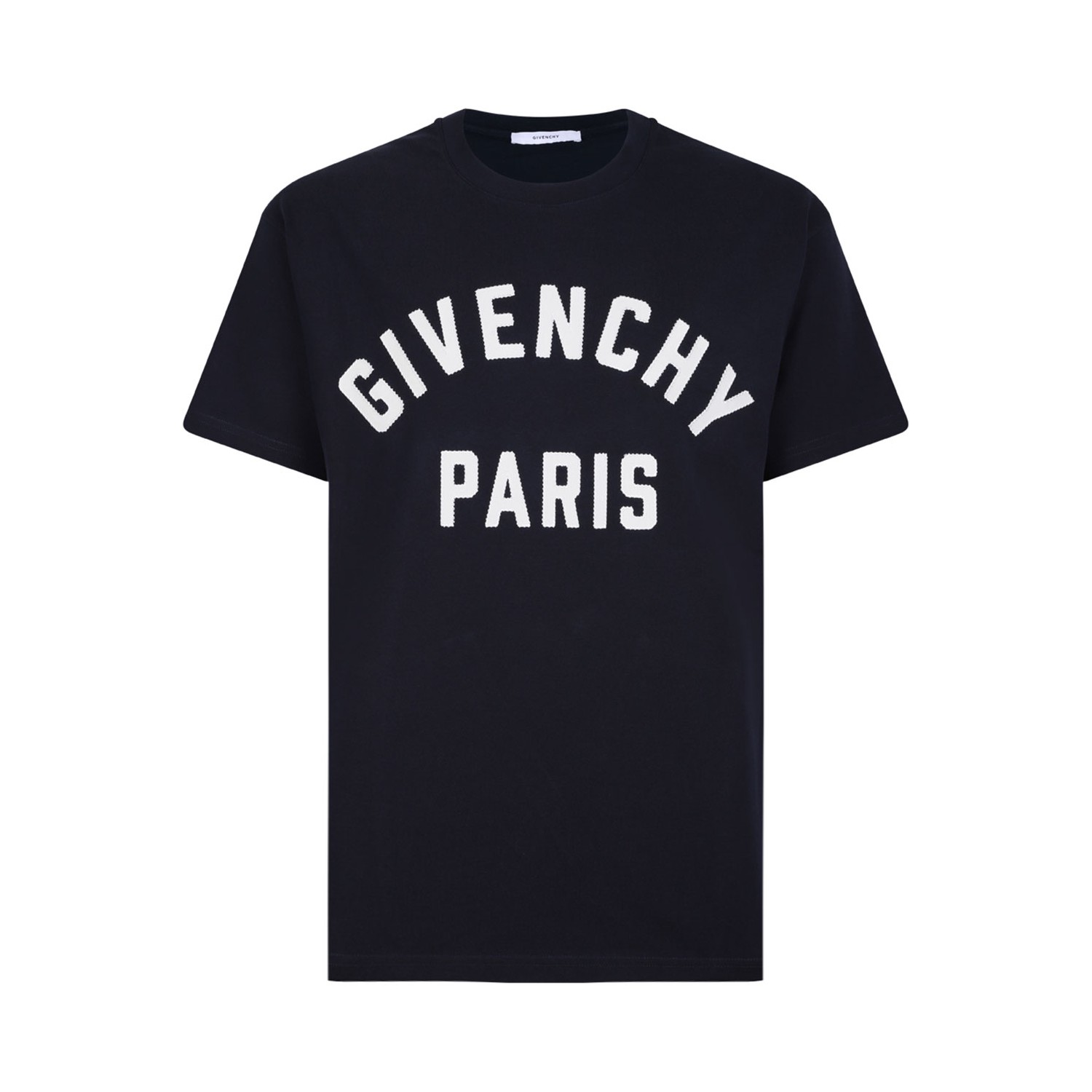 Givenchy Navy Blue Logo Stamp Print Shirt. Navyy blue cotton shirt with hort-sleeves, crew neck and Givenchy stamp printed on the chest.