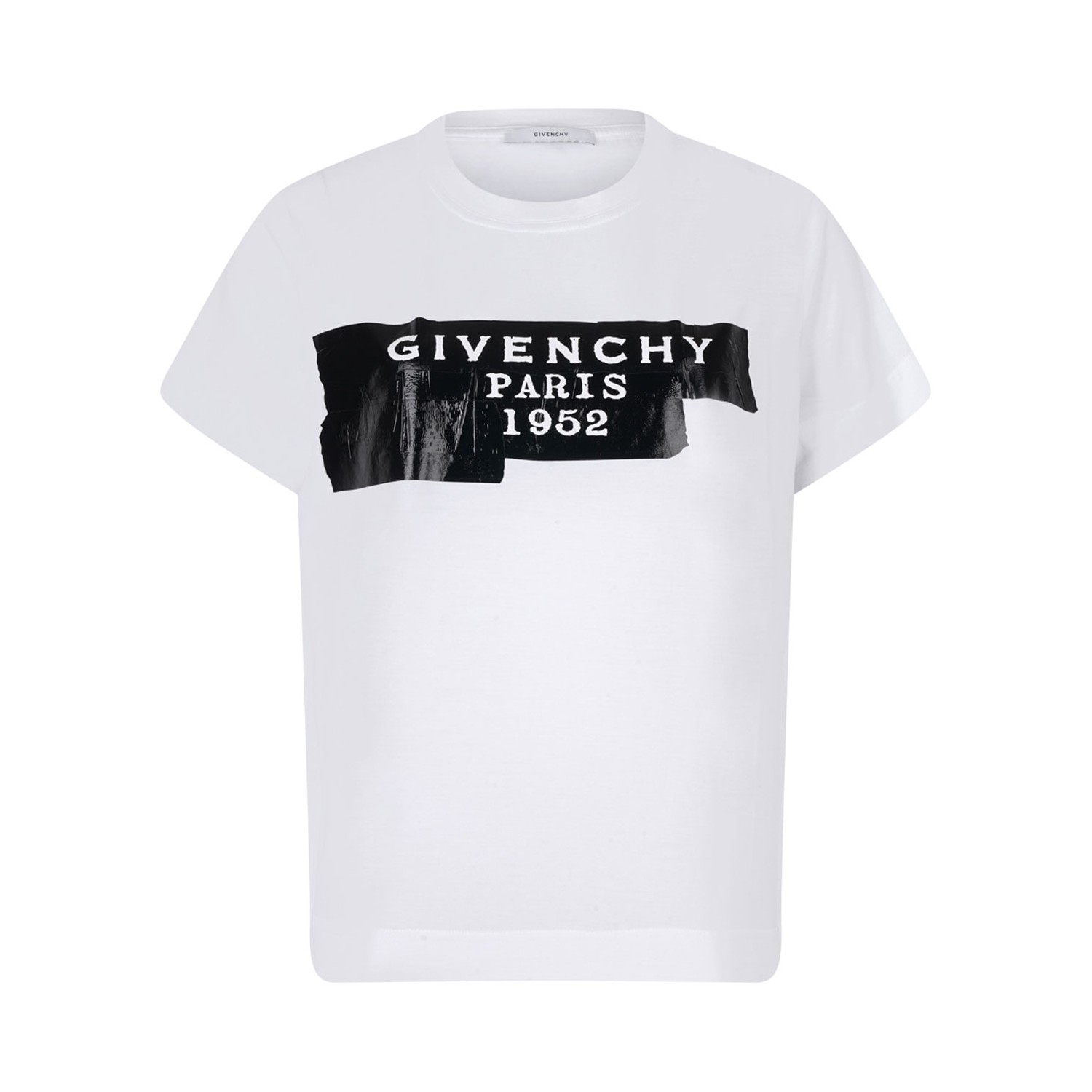 Givenchy White Cotton T-Shirt with Givenchy Tape. White short-sleeved cotton T-shirt with choker and GIVENCHY Tape 3D print on the front.
