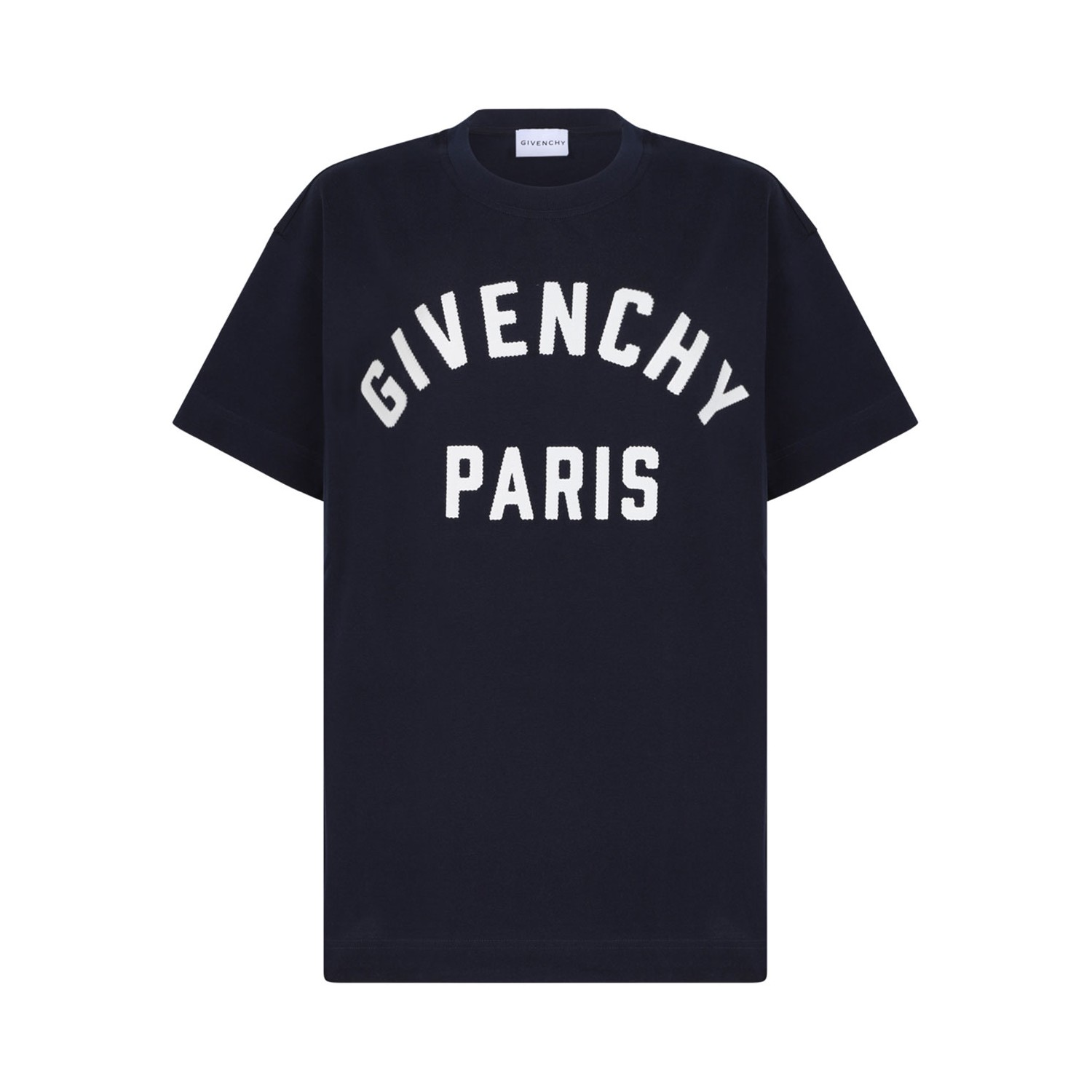 Givenchy Navy Blue Logo Print T-Shirt. Navy blue cotton t-shirt with logo print to the front, crew neck, short sleeves.