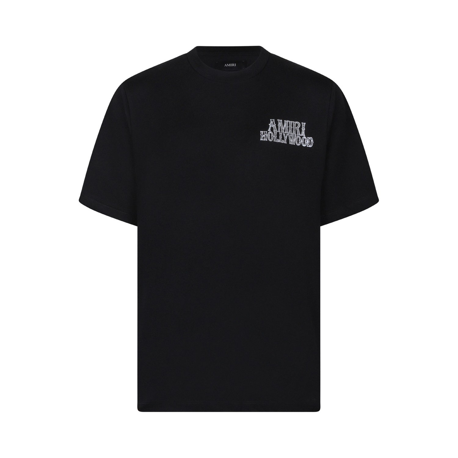Amiri Black Hollywood Print Cotton T-Shirt. Black cotton t-shirt with logo print to the front and to the rear, crew neck, short sleeves.