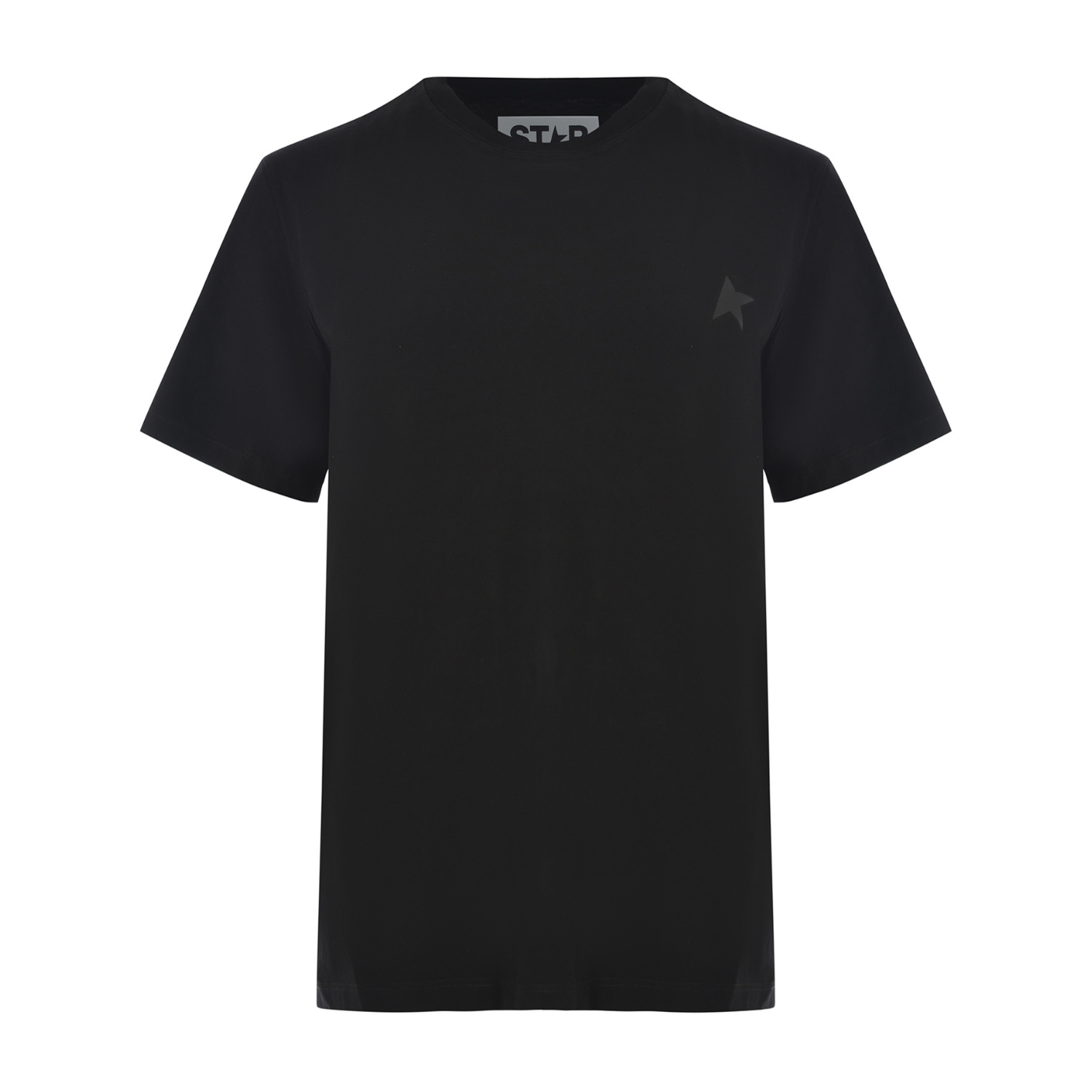 Golden Goose Black Star Print Cotton T-Shirt. Black cotton t-shirt with ribbed crewneck, short sleeves, black"Star" logo print on the chest.