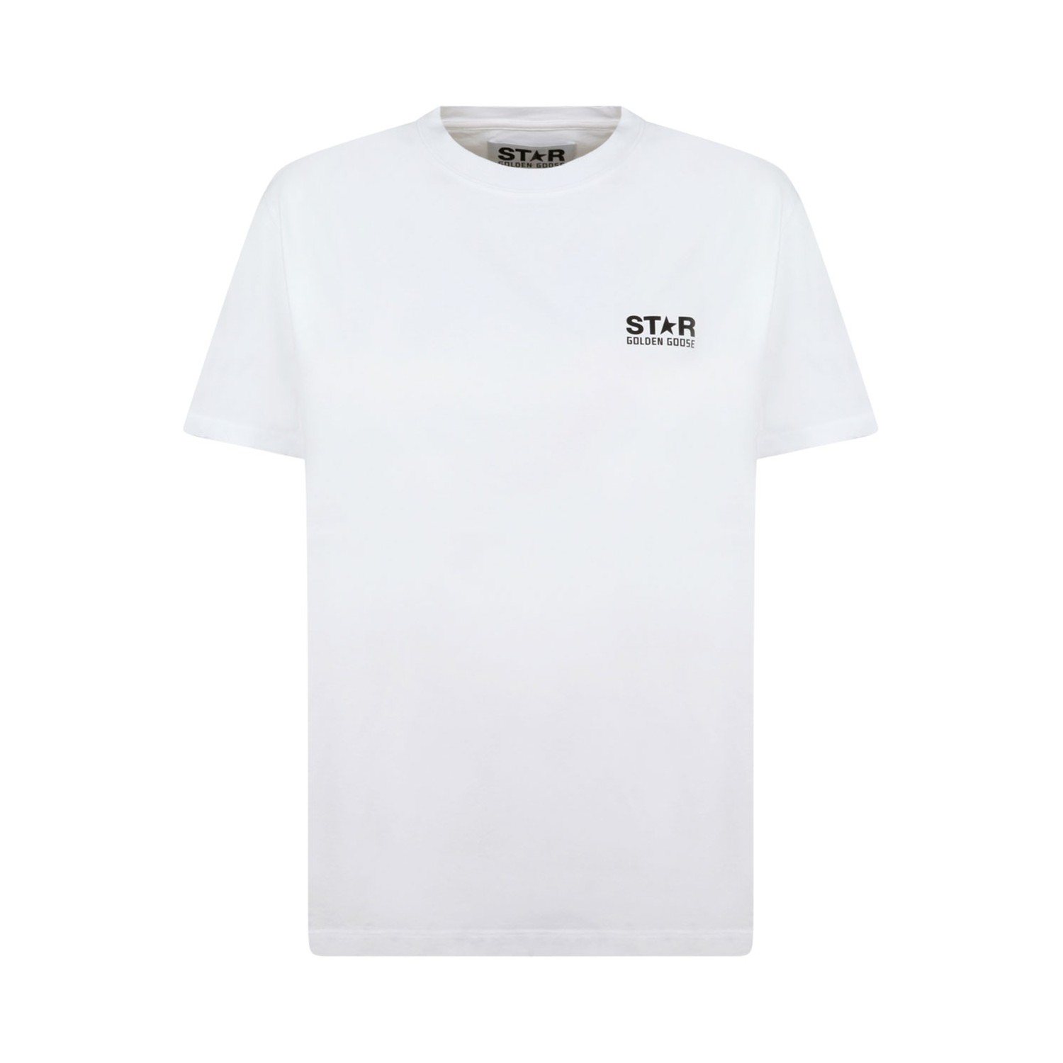 Golden Goose White Printed T-Shirt. White cotton printed t-shirt with black logo print on the back and chest, short sleeves and crew neck.