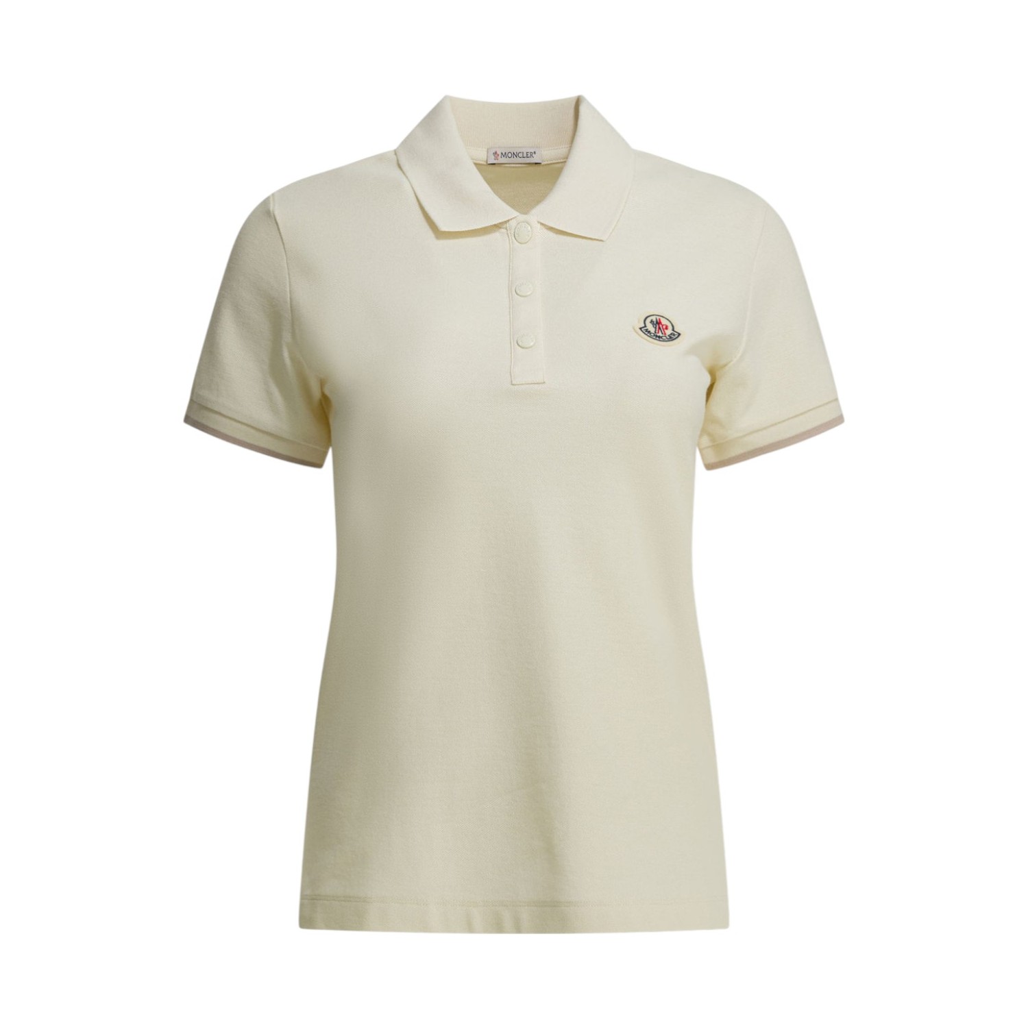 Moncler White Cotton Polo Shirt. White short-sleeve polo shirt with a refined, feminine silhouette. Polo crafted in soft stretch cotton piqu