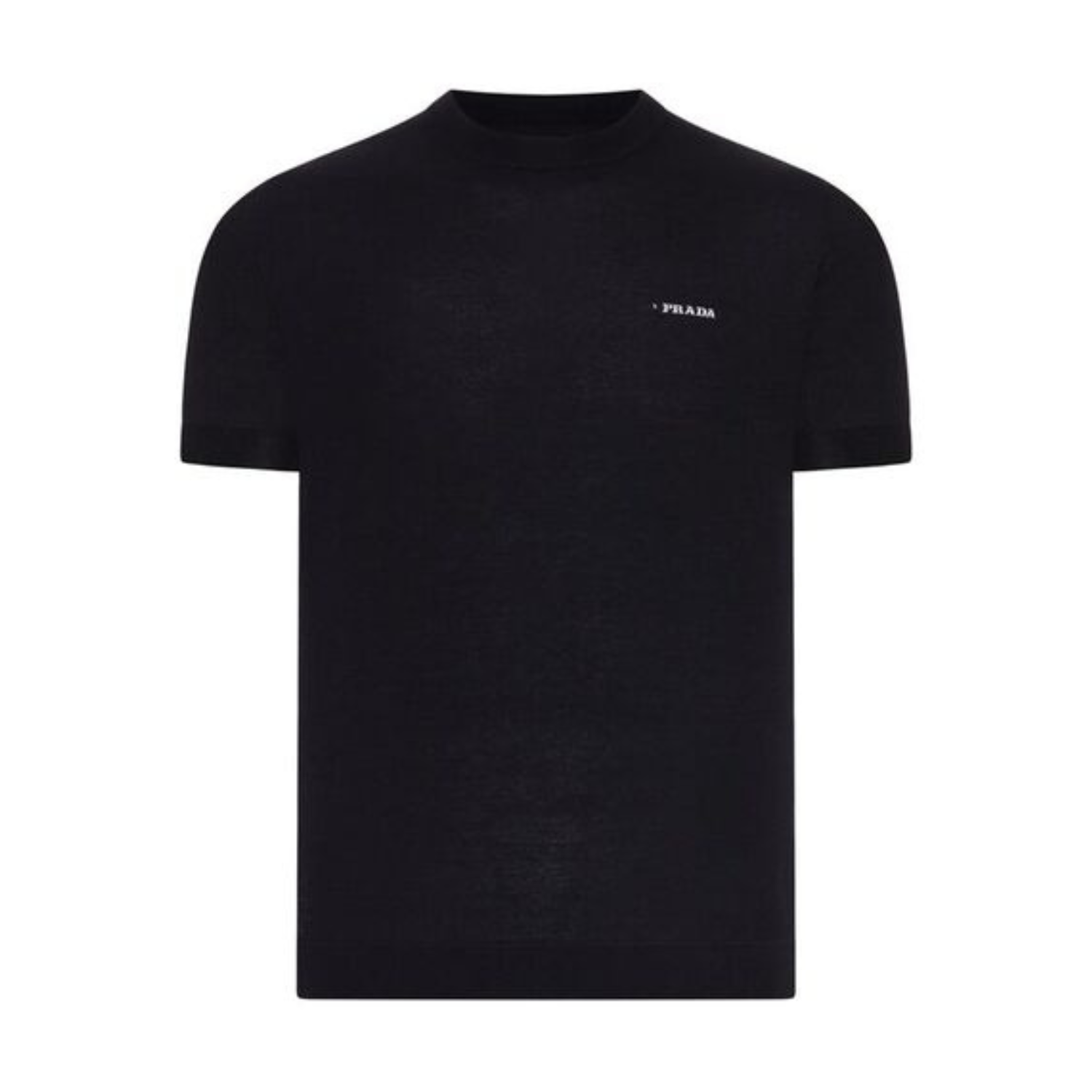 Prada Black Cotton Crew Neck Sweater T-Shirt. Black short-sleeve sweater with a clean, contemporary silhouette. Sweater crafted in compact cotton knit for a smooth, structured yet comfortable feel. Featuring a ribbed crew neckline, short sleeves with clean hems, straight fit and subtle Prada logo detail on the chest for a refined, understated finish.