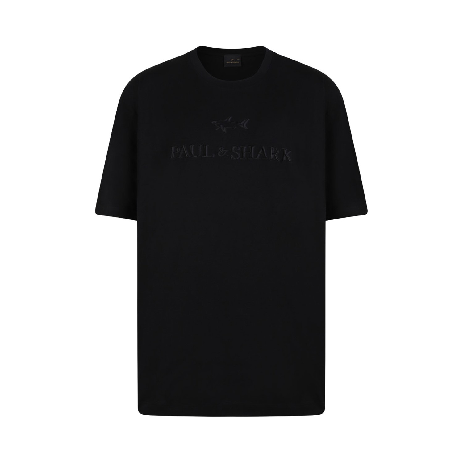 Paul & Shark Black Logo Print T-Shirt. Short-sleeve T-shirt crafted in black cotton jersey with a clean, contemporary silhouette. Featuring a classic crew neckline and tonal Paul & Shark logo print on the chest for a refined, understated statement. Designed for a comfortable regular fit, it combines everyday versatility with the brand