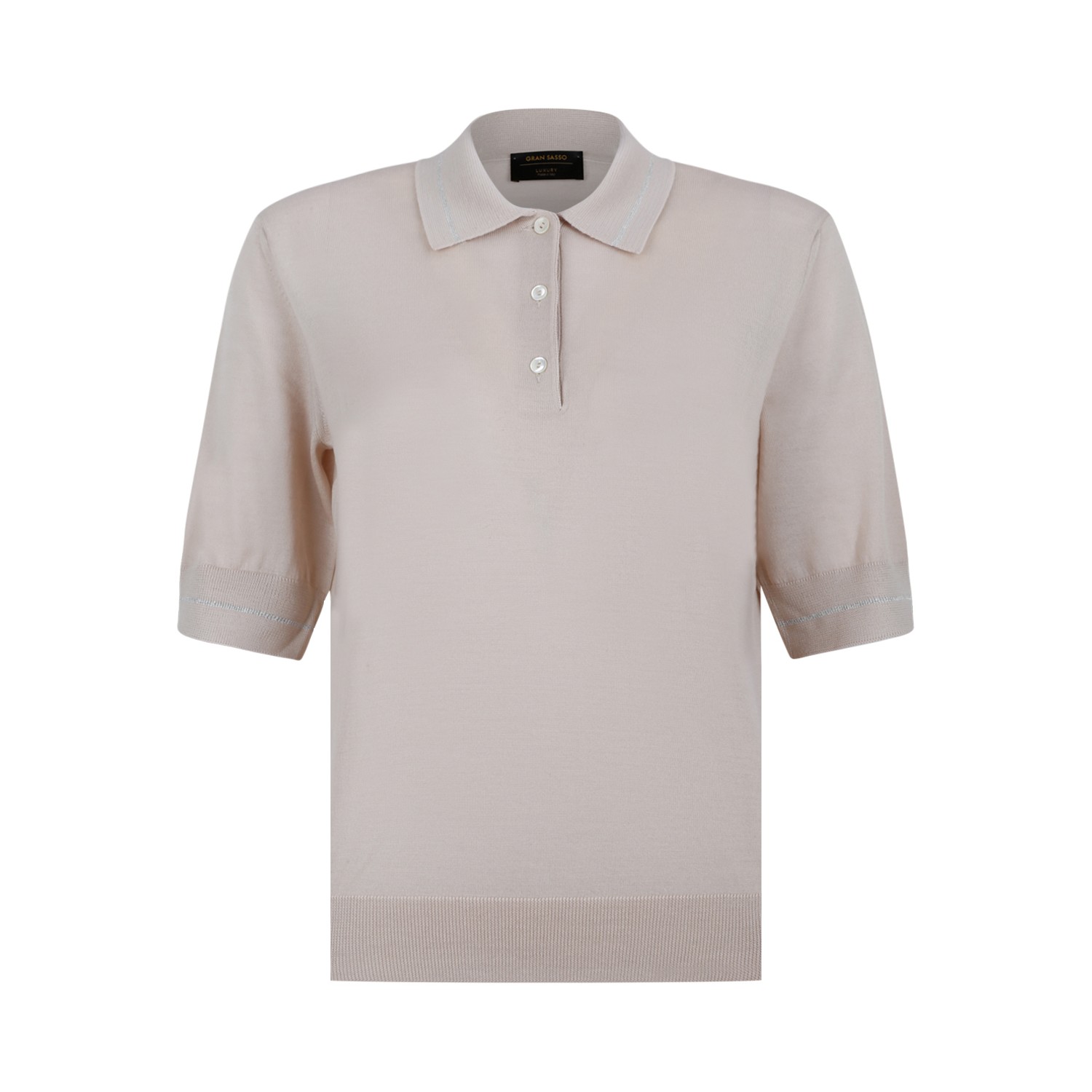 Gran Sasso Beige Knit Polo Shirt. Beige knit polo shirt defined by a refined, contemporary silhouette and signature Gran Sasso craftsmanship. Crafted from soft, lightweight cotton knit, this polo features a classic three-button placket and a structured collar that enhance its elegant yet relaxed aesthetic. The short sleeves and finely ribbed hem provide a balanced fit while ensuring comfort and breathability throughout the day. The smooth knit texture highlights the brand