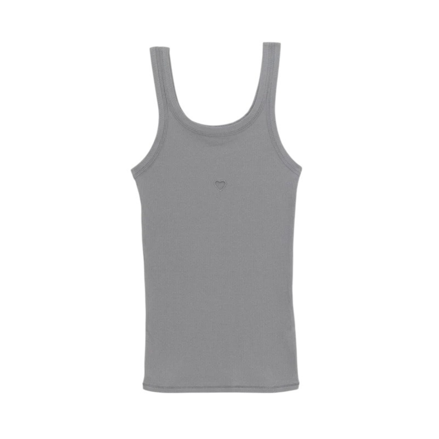 Baserange Bow Blue Heart Tank. Bow blue cotton rib tank top, scoop neck front and back. Heart shape embroidery with cut out at front.