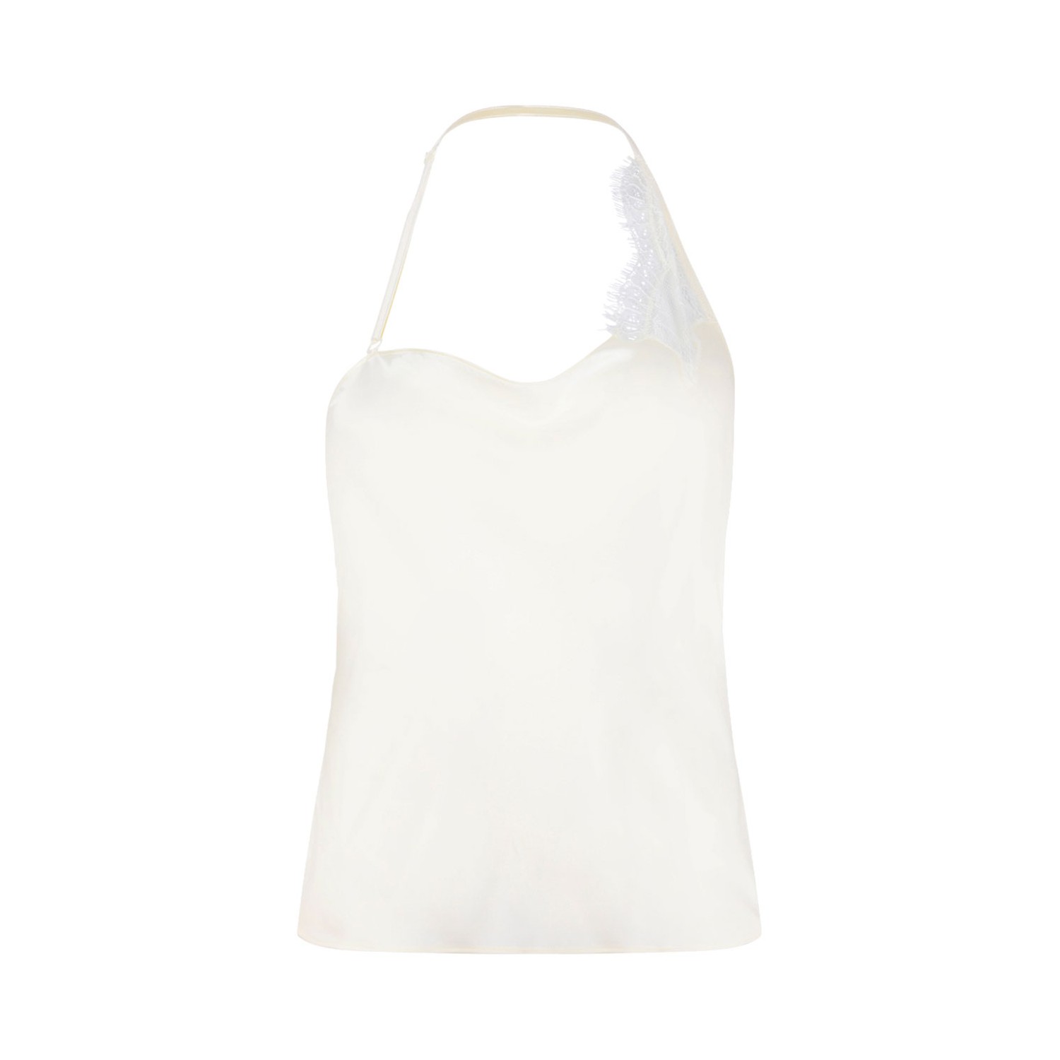 Courreges Beige Asymmetric Top. Beige asymmetrical tank top with lingerie-effect lace straps and sleeveless design.