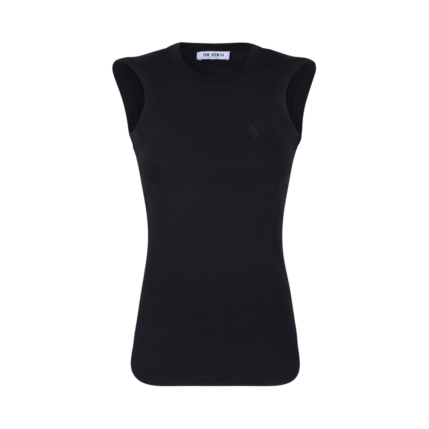 The Attico Black Reese Tank Top. Black cotton tank top, crew neck, sleeveless, embroidered logo at the chest.