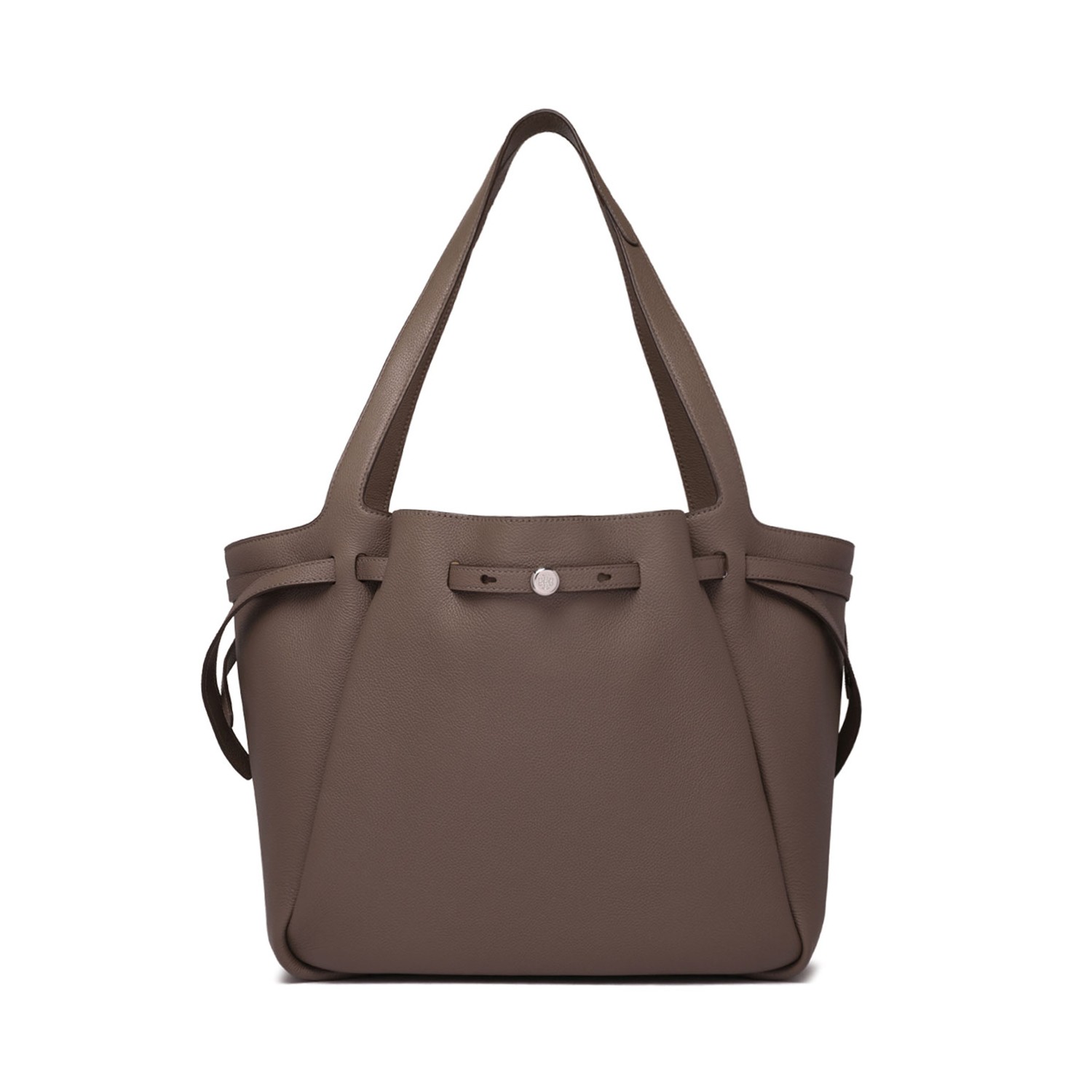 Tory Burch Romy Tote Bag. The Romy shopping bag is made of fine hammered leather, with a thin belt that defines its soft curves and movement. Finished with minimalist details, a long and comfortable shoulder strap and a zip pocket for a lightweight and very functional model.