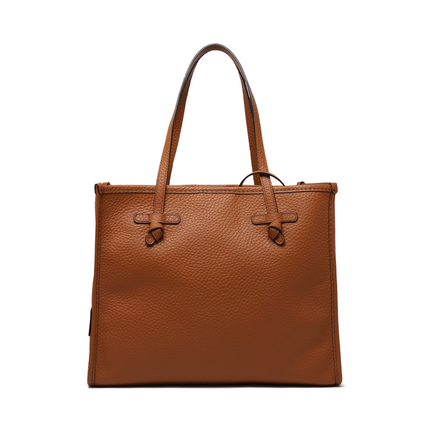 Marcella Leather Tote Bag. The Marcella tote bag by Gianni Chiarini Firenze, featuring a simple and modern silhouette, is crafted from double-grain leather, giving it a distinctive, high-quality look. The leather handles and convenient magnetic closure make it perfect for everyday use. The interior lining and matching pouch add a touch of versatility, making it ideal for completing any outfit with elegance and practicality.