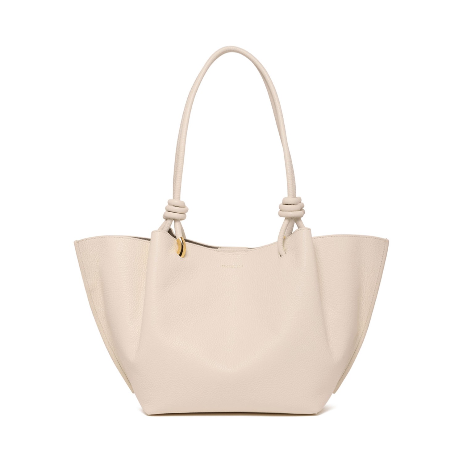 Coccinelle Pearl Finn Leather Shopper Bag. Pearl leather shopper bag with two top handles, logo print to the front, main compartment.