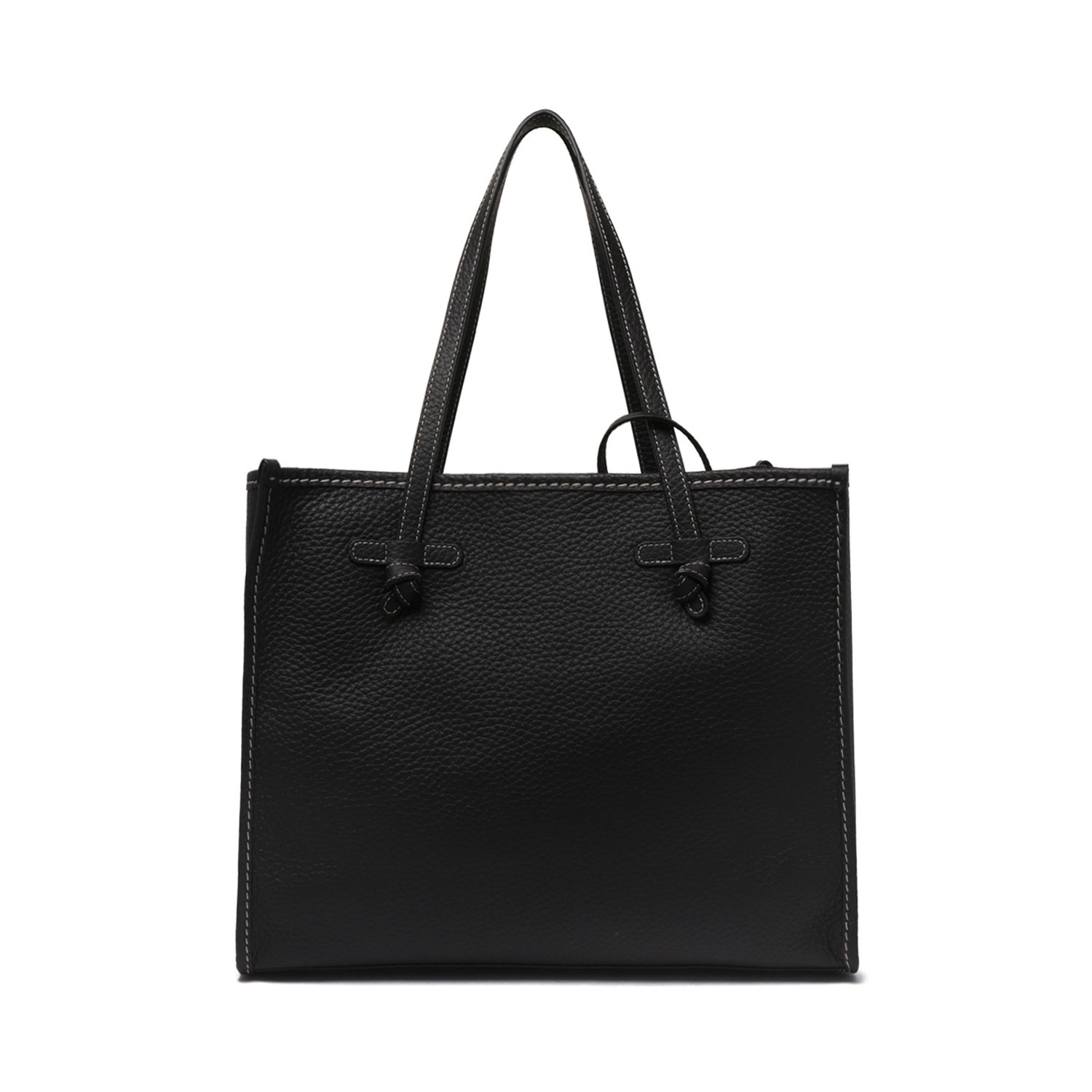 Marcella Black Tote Bag. The Marcella tote bag by Gianni Chiarini Firenze, featuring a simple and modern silhouette, is crafted from double-grain leather, giving it a distinctive, high-quality look. The leather handles and convenient magnetic closure make it perfect for everyday use. The interior lining and matching pouch add a touch of versatility, making it ideal for completing any outfit with elegance and practicality.