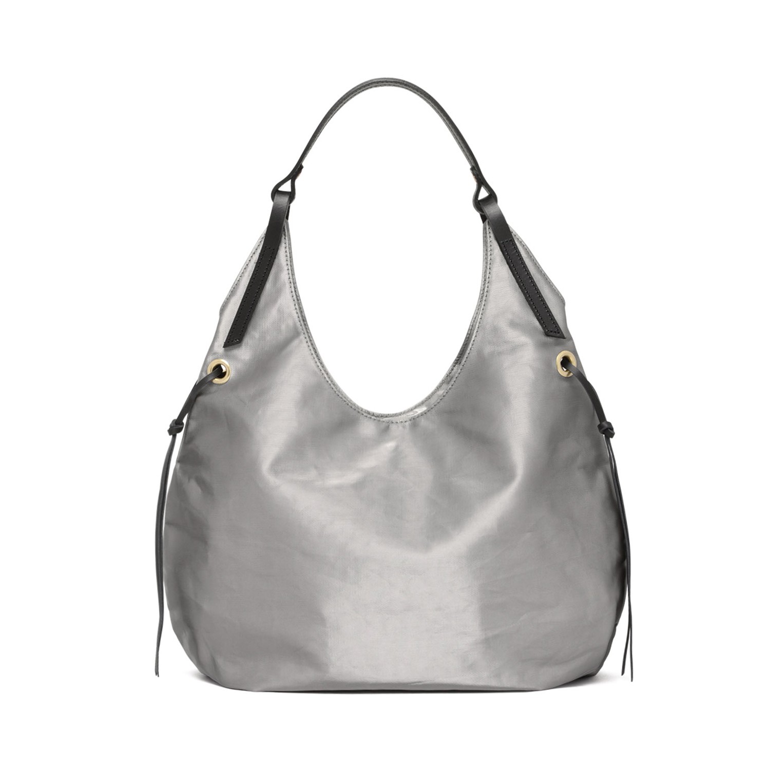 Jack Gomme Silver Sand Linen Tote Bag. Silver coated natural linen tote bag worn on the shoulder, 1 leather handle, closure with a snap button. 1 inside pocket, lightweight, resistant and water-repellent.