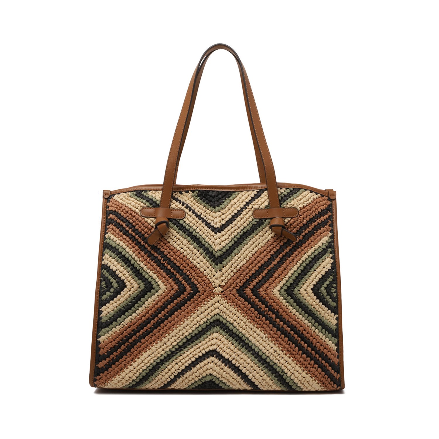 Marcella Multicolour Women Straw Tote Bag. The Marcella tote bag by Gianni Chiarini Firenze is made of woven straw with contrasting leather trim that enhances its simple, sophisticated design. Perfect for summer, it features leather handles, a magnetic closure, and a matching leather clutch. A practical and distinctive accessory, ideal for any everyday look.